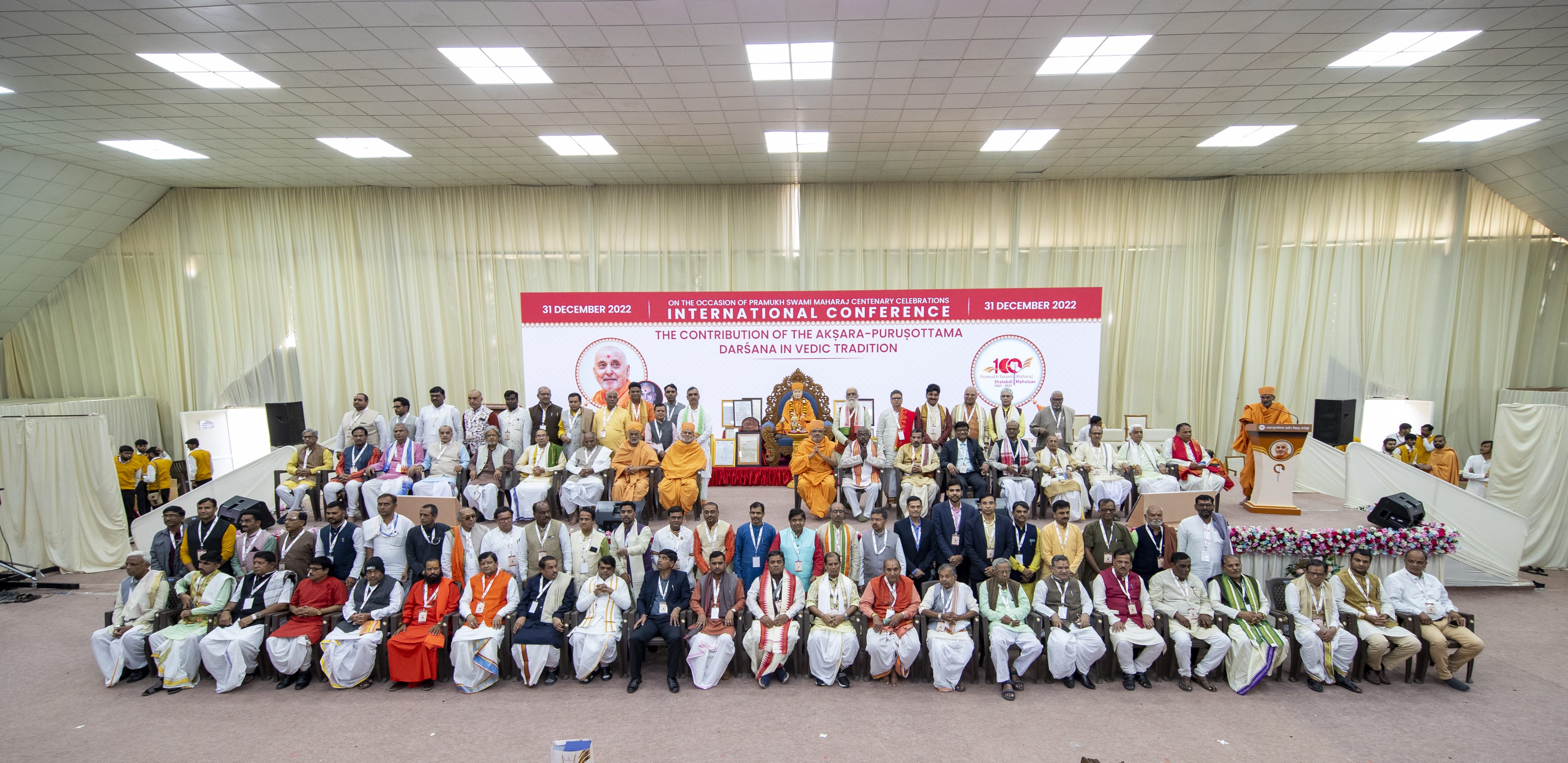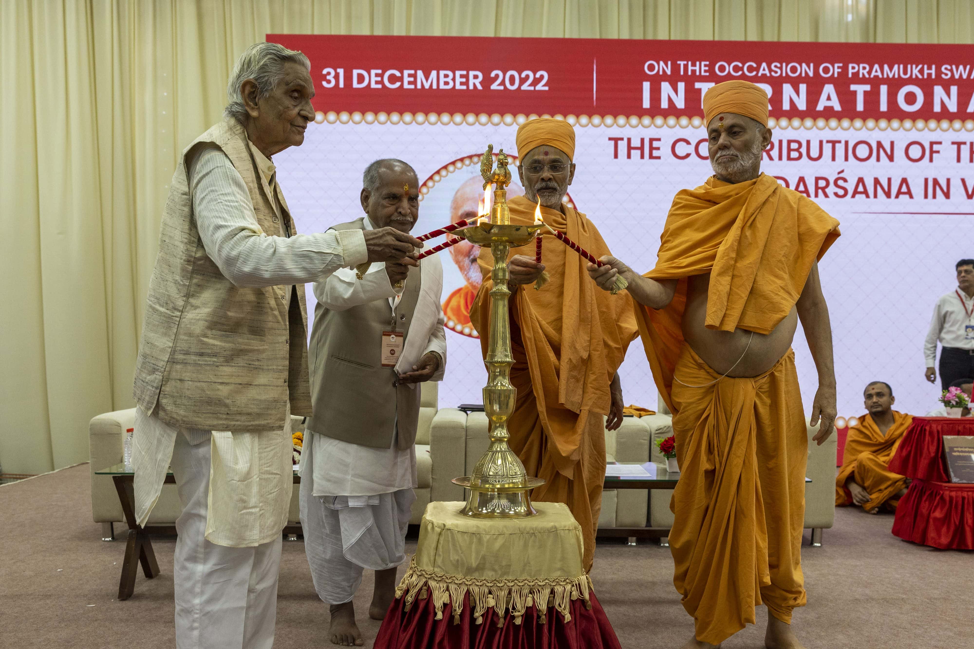 On 31 December 2022, an International Conference was held on the Akshar-Purushottam Darshan and its contribution to Vedic Sanskrit traditions at the Pramukh Swami Maharaj Nagar in Ahmedabad. The conference was organized by the BAPS Swaminarayan Research Institute, New Delhi in collaboration with Central Sanskrit University, New Delhi, Shree Somnath Sanskrit University, Veraval, and the Akshardham Center for Applied Research in Social Harmony (AARSH), Gandhinagar. The conference was organized as part of the centenary celebrations of his Holiness Pramukh Swami Maharaj in Ahmedabad.