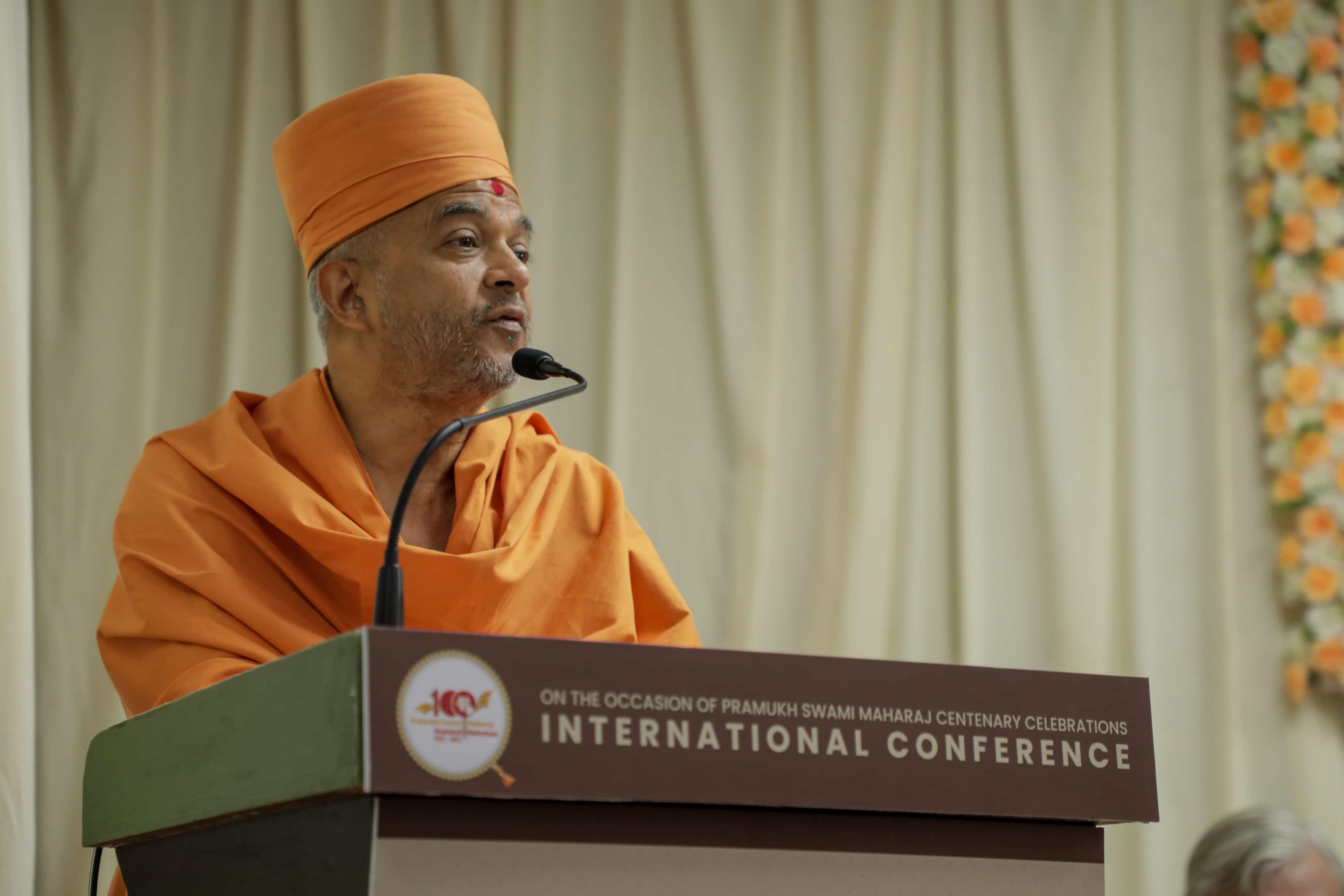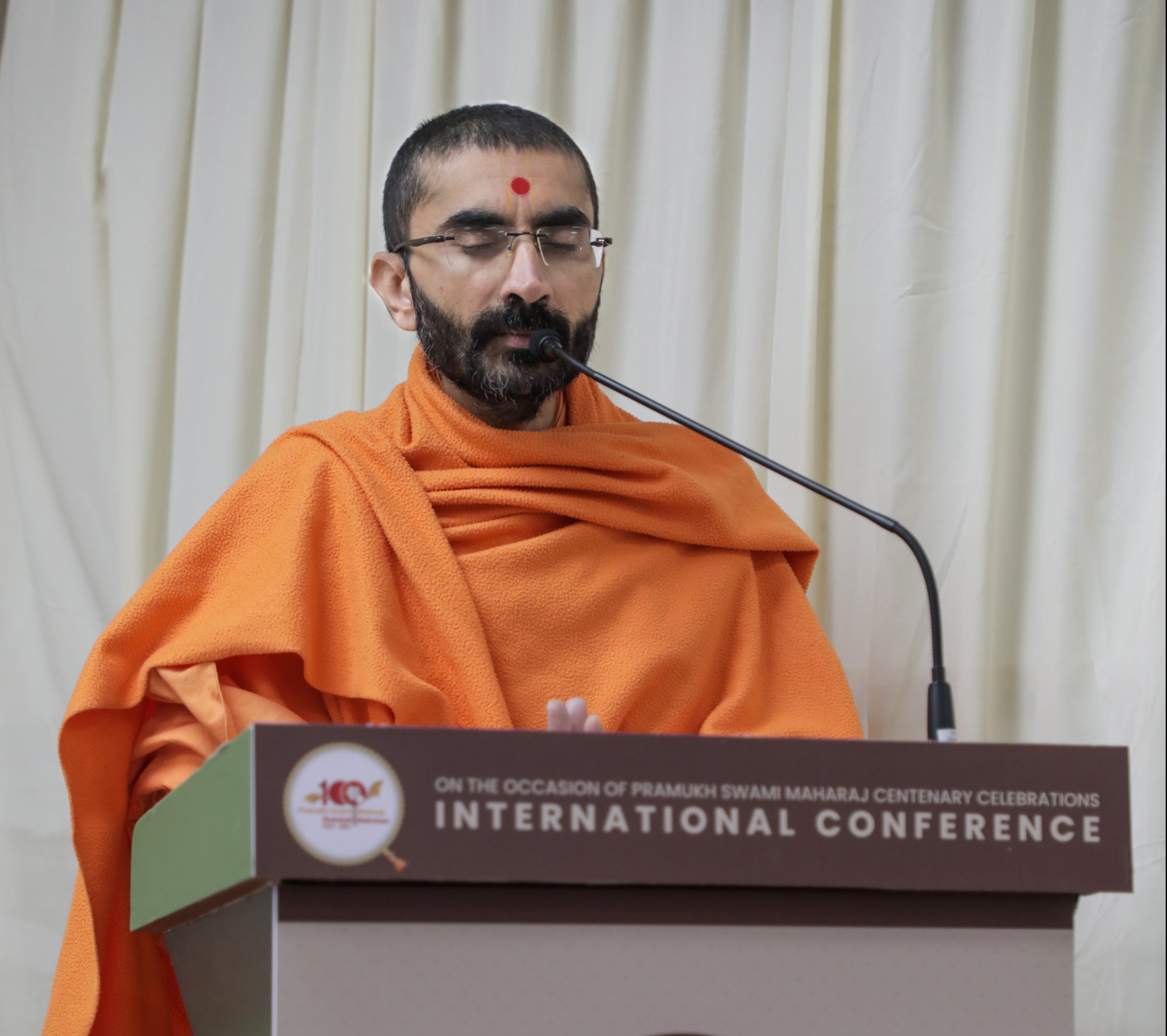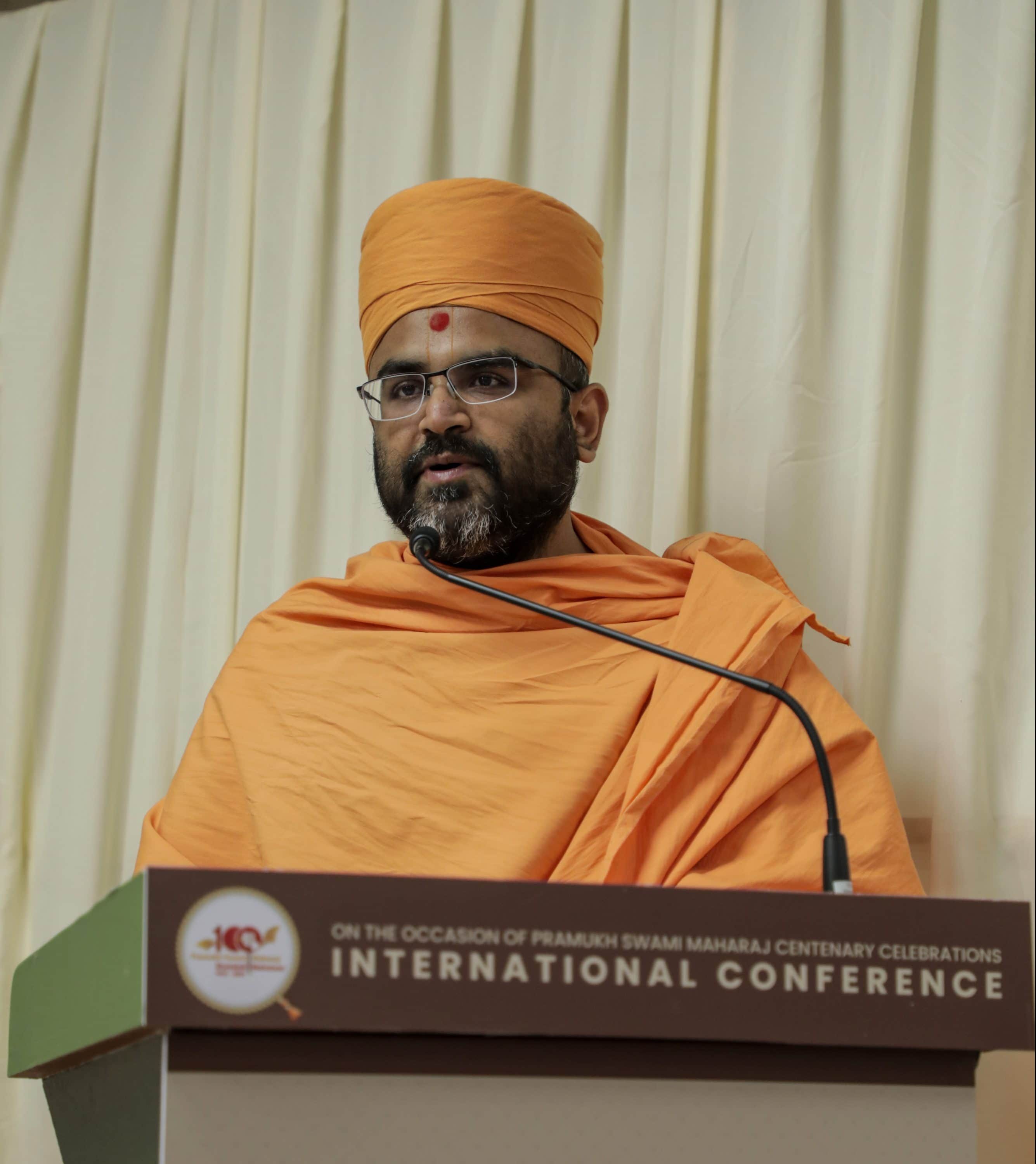 In the next session, Shri Abhijit Jogi focused on the process of cultural construction through history and how India’s past must be examined for points of cultural change. Shri Hershini Soneji, a graduate student at the University of Cambridge, then elaborated on verbal testimony and its importance in the Swaminarayan-siddhanta-sudha, a Sanskrit text describing the philosophical positions of the Akshar-Purushottam Darshan. Thereafter, Shri Vandan Gor, a research scholar at the Maharaja Sayajirao University of Baroda, outlined the concept of ahimsa (non-violence) as historically understood in the Swaminarayan tradition. He also explained how internalizing ahimsa is part of a larger devotional goal in the tradition. Shri Tushar Shah, a Visiting Lecturer at the University of Roehampton and a Doctoral Candidate at the University of Cambridge, then touched upon aspects of Pramukh Swami Maharaj’s ecumenism and his role in bringing together communities and religious leaders. Finally, Shri Anchit Jain, a graduate student at the University of Delhi, emphasized the role of “Bhagwan Swaminarayan and his spiritual successors in the evolution of festivals like Jal-Jhilani” and how these festivals have become global events.