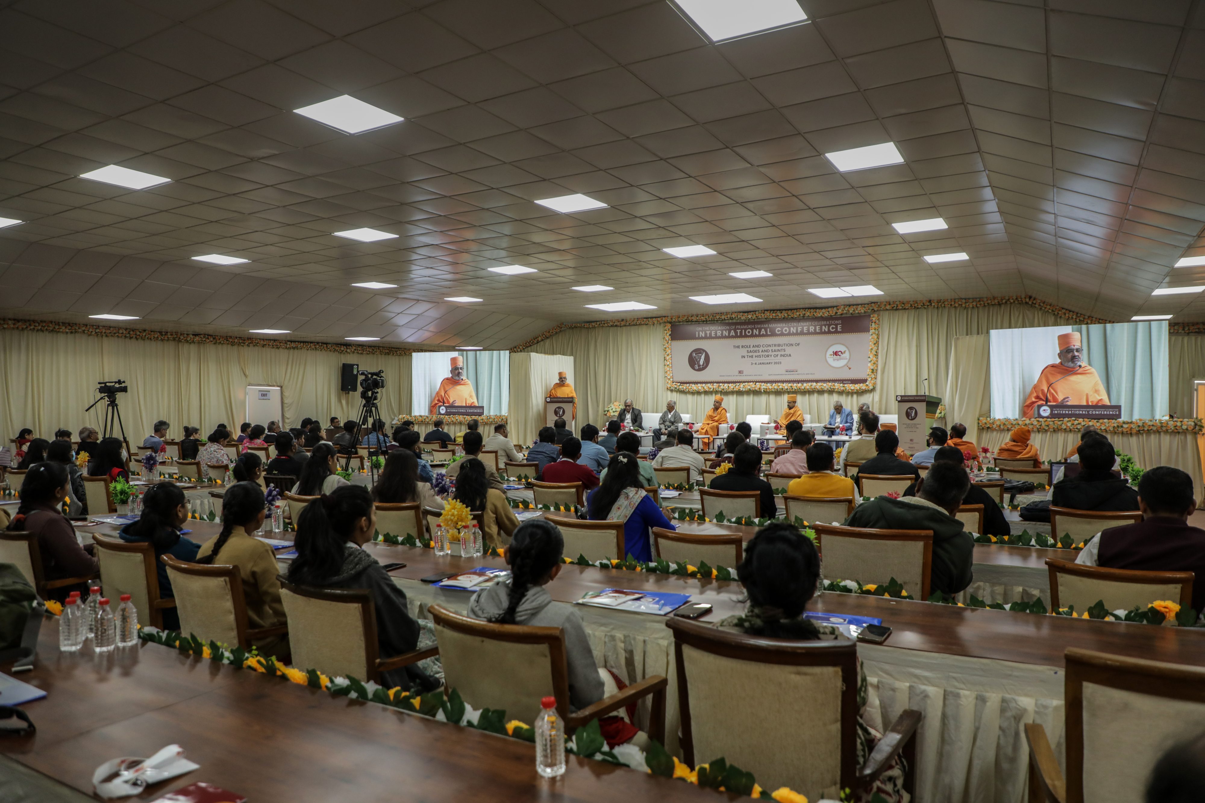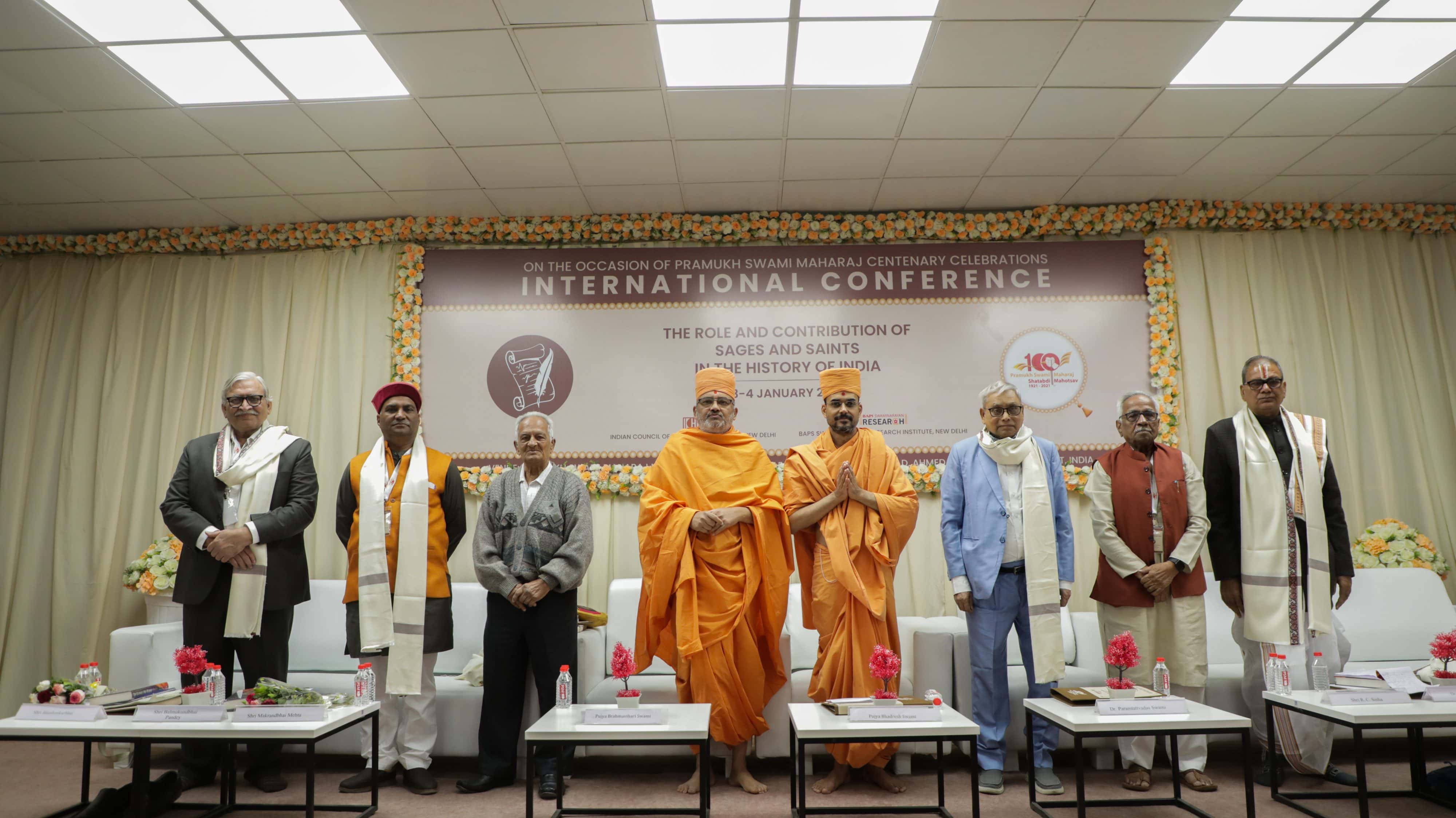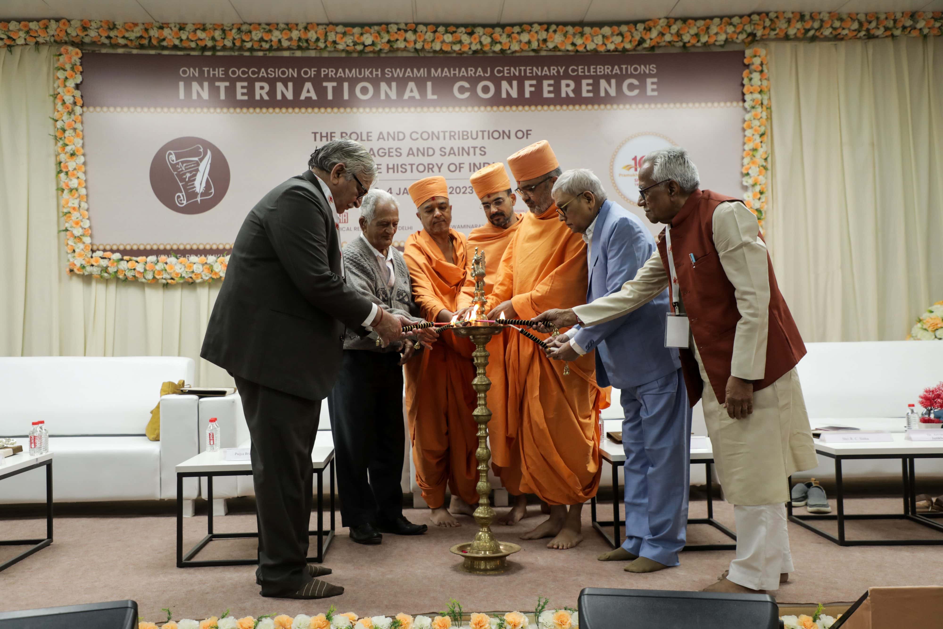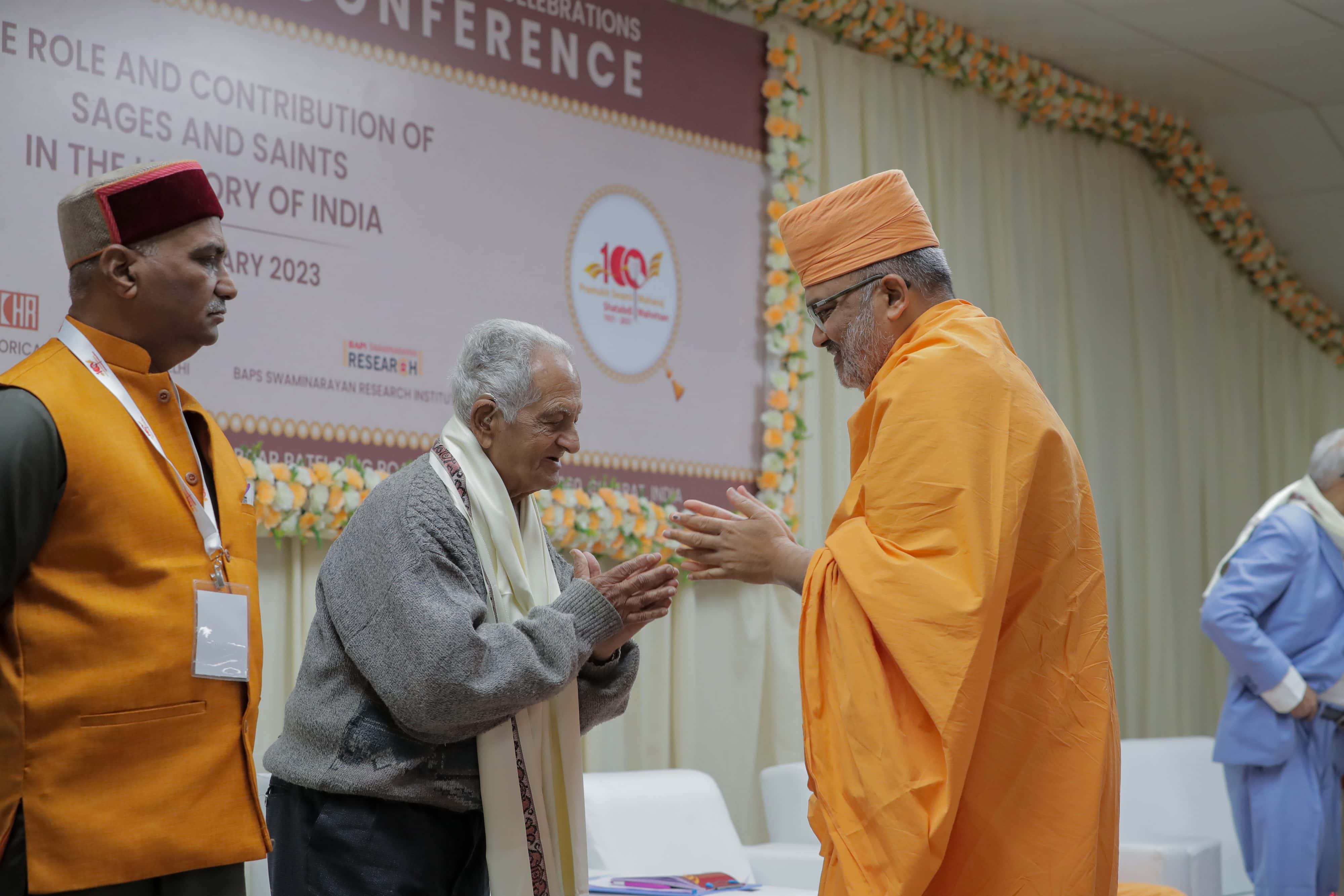 The second day of the conference began with various scholars presenting their original research. Prof. Sondra Hausner, a Professor of the Anthropology of Religion at the University of Oxford, pointed out in her presentation that “principal examples of renunciation and social work are found thriving in the Pramukh Swami Maharaj Nagar.” She stressed on the role of renunciation, and argued how it is used by practitioners “to transcend earthly limitations in a worldly body. The urge for liberation is foundational to the renunciation of the ascetic.” Thereafter, Prof. William Pinch, a Professor of History and Environmental Studies at Wesleyan University, compared two historical events during the late eighteenth century: the renunciations by Sahajanand Swami and Himmat Bahadur in northern India, through the lens of Sankhya and Yoga. Prof. Shonaleeka Kaul, an Associate Professor in the Centre for Historical Studies at Jawaharlal Nehru University, then elaborated on the bhakti traditions of early Kashmir. A presentation was then given by Prof. Bhakti Mamtora, an Assistant Professor of South Asian Studies at the College of Wooster. She analyzed “the conceptions of the self and practices for self-cultivation in the Swamini Vato, a collection of oral teachings given by Gunatitanand Swami” (the spiritual successor of Bhagwan Swaminarayan). She also elaborated on the principle of agency in devotional traditions. Thereafter, Shri Mukti Patel, a graduate student at the University of Chicago, compared the poetic compositions of Narsimha Mehta and Muktanand Swami. Shri Bhavi Bhagat, a graduate student at Harvard University, then provided a historical context of the opium trade in colonial India and emphasized the role of de-addiction campaigns initiated by BAPS. Finally, Dr. Shalin Jain, a Professor at the University of Delhi, highlighted the socio-cultural relations fostered between the Jain ascetic Harivijay Suri and the Mughal Emperor Akbar.