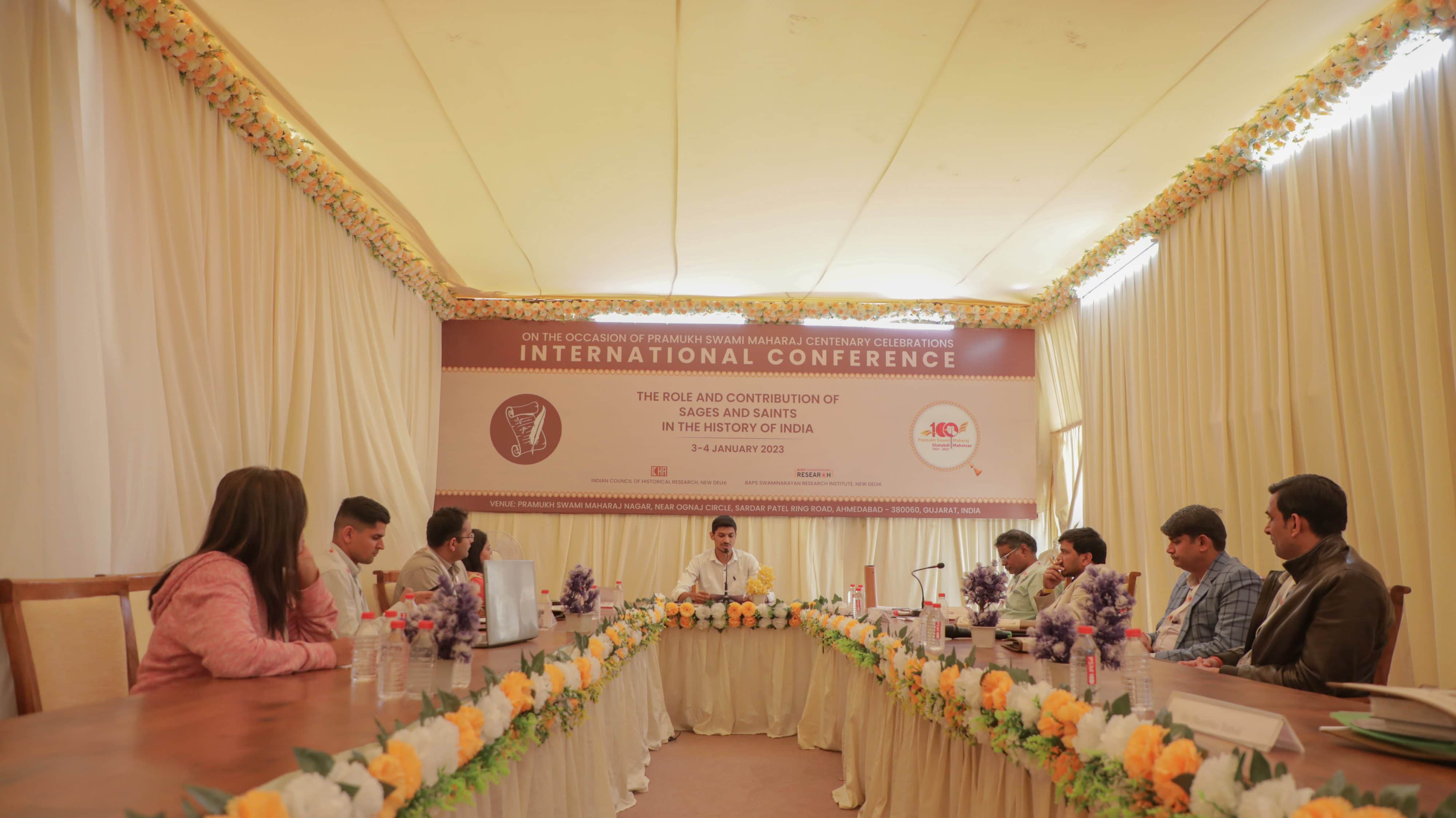 A parallel session was chaired by Dr. Shalin Jain. Dr. Vinod Kumar Singh, an Assistant Professor in the Department of English at the University of Delhi, began the session by presenting his work on Tulasi Ramayana. He showed how “Tulsi employed literature to educate people and resisted cultural disintegration in his own time.” Thereafter, Dr. Prem Singh, an Assistant Professor at Jaynarayan Vyas Vidhyalaya at Jodhpur, elaborated on the Niranjani Sampradaya in Rajasthan and elucidated how nirgun bhakti traditions co-opted the message of Vedanta within bhakti traditions. Dr. Bharat Rathod, an Assistant Professor at Government Arts and Commerce College in Jaffarabad, then focused on the life, work, and message of guru Jagjivan Bapu in the Saurashtra regions of Gujarat. Shri Jay Pandya, a Doctoral Candidate at the University of Sydney, then explored “the role that saints and sages, like Pramukh Swami Maharaj, have played in the development of democracy in India. He highlighted how they have promoted democratic participation and contributed to discourses on secularism.” Thereafter, Shri Ishan Modi, a research scholar at Maharaja Sayajirao University of Baroda, presented on the works of Nishkulanand Swami, a disciple of Bhagwan Swaminarayan, and demonstrated how his works provide “critical resources to understand the history of the Sampradaya.” In a similar vein, Shri Sahaj Parikh, a graduate student at the University of California in Santa Barbara, presented on the poetic compositions of Brahmanand Swami and his corpus of works “in consolidating and disseminating the religious and secular teachings of Swaminarayan.”