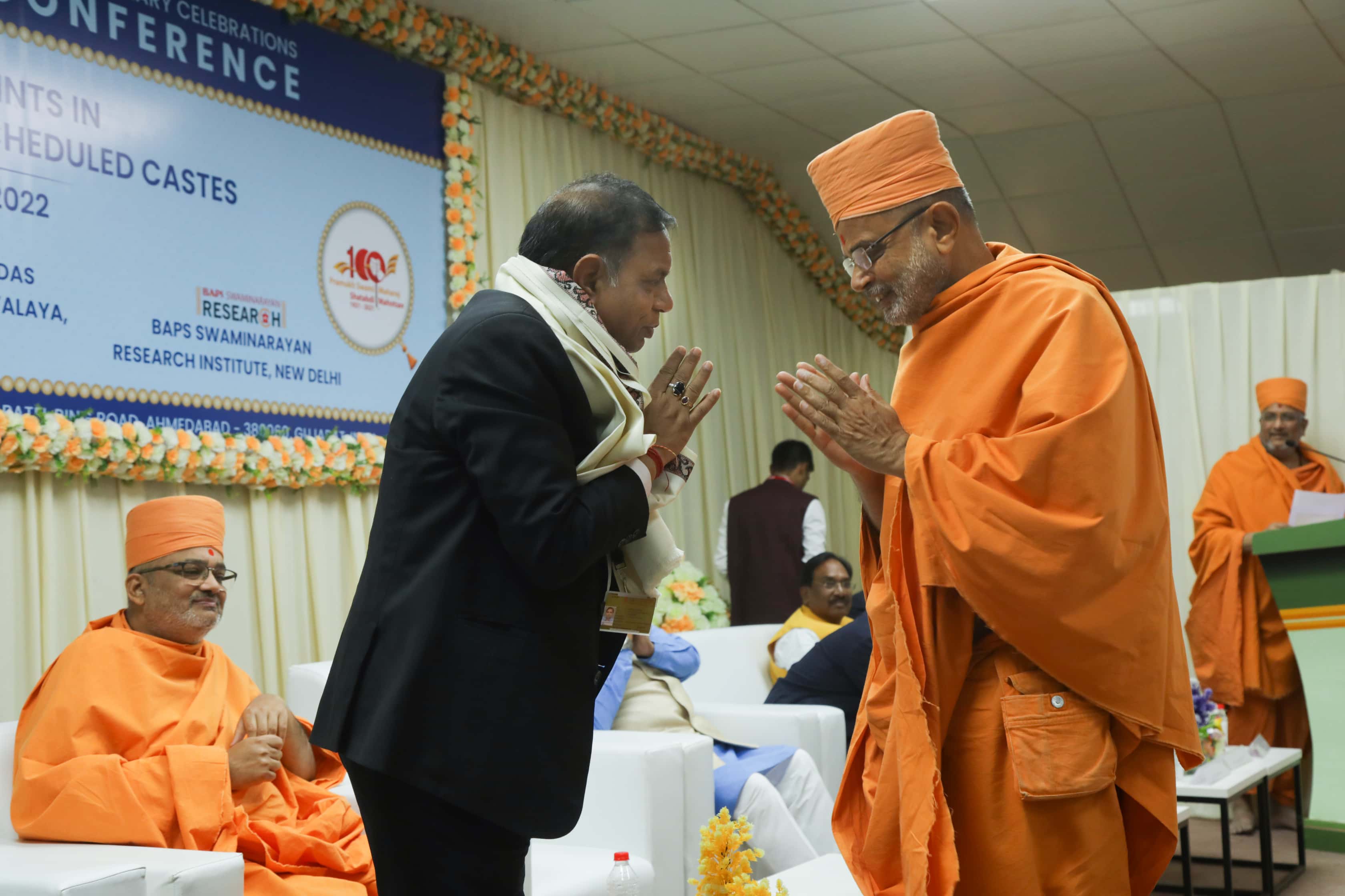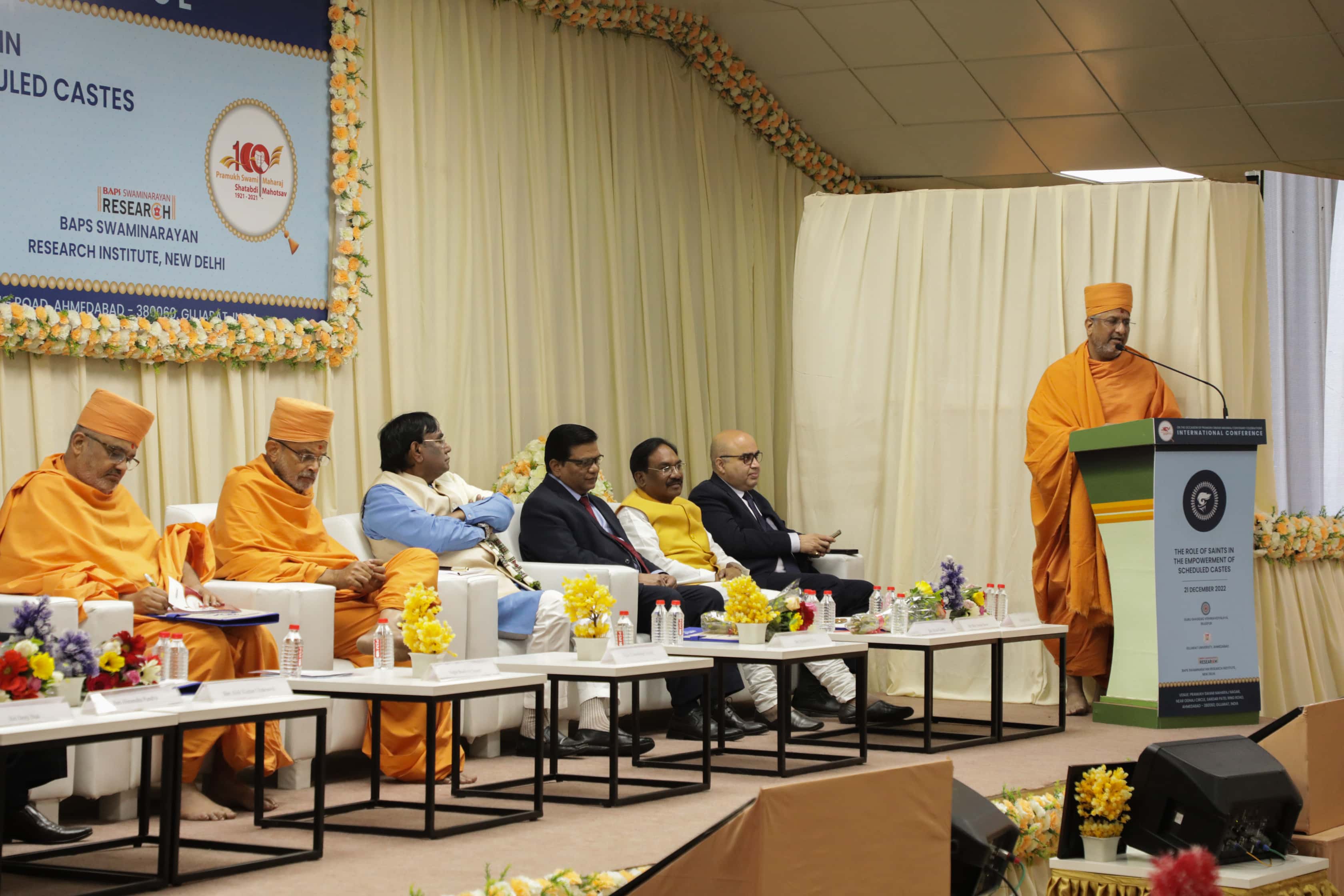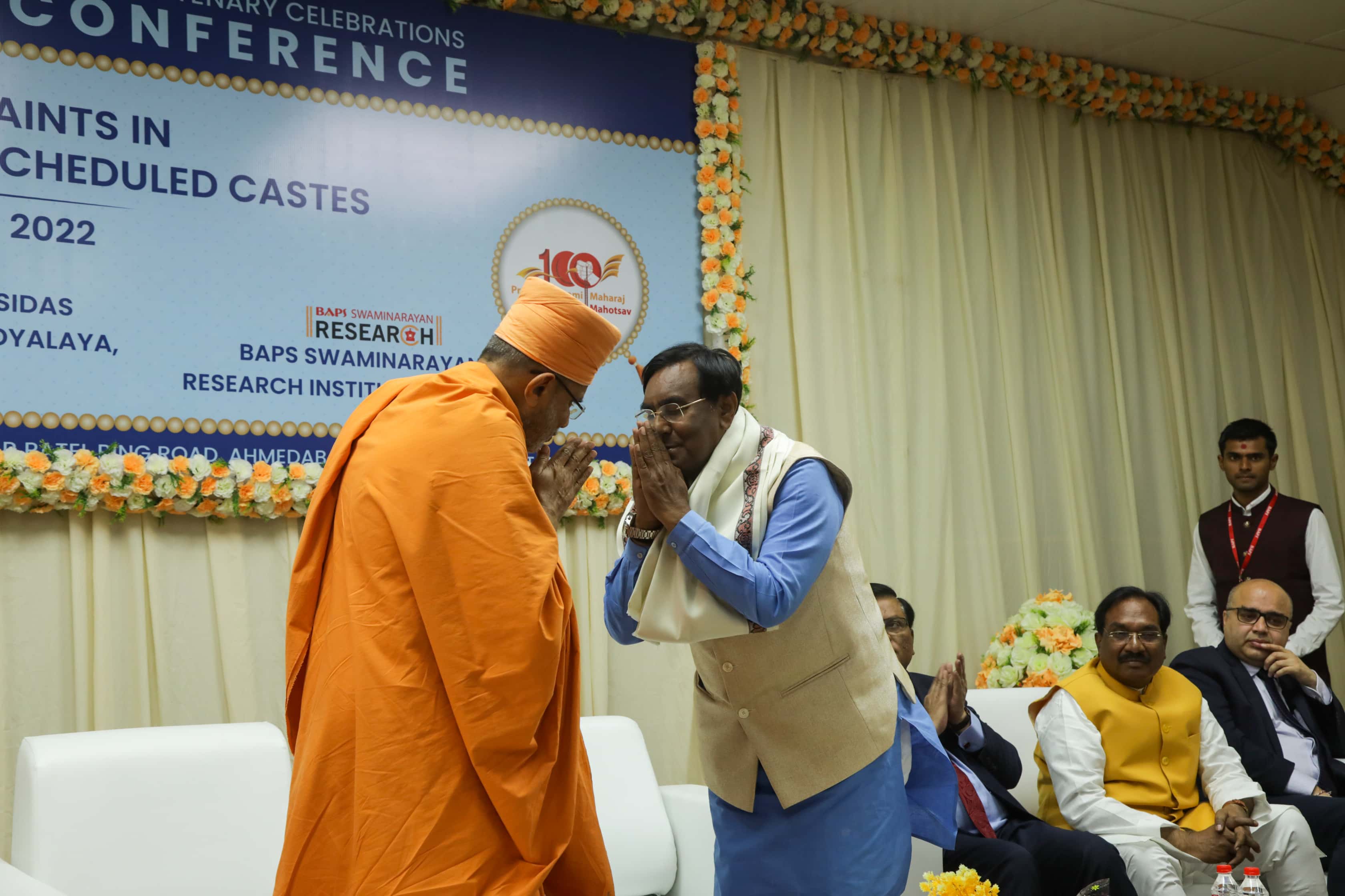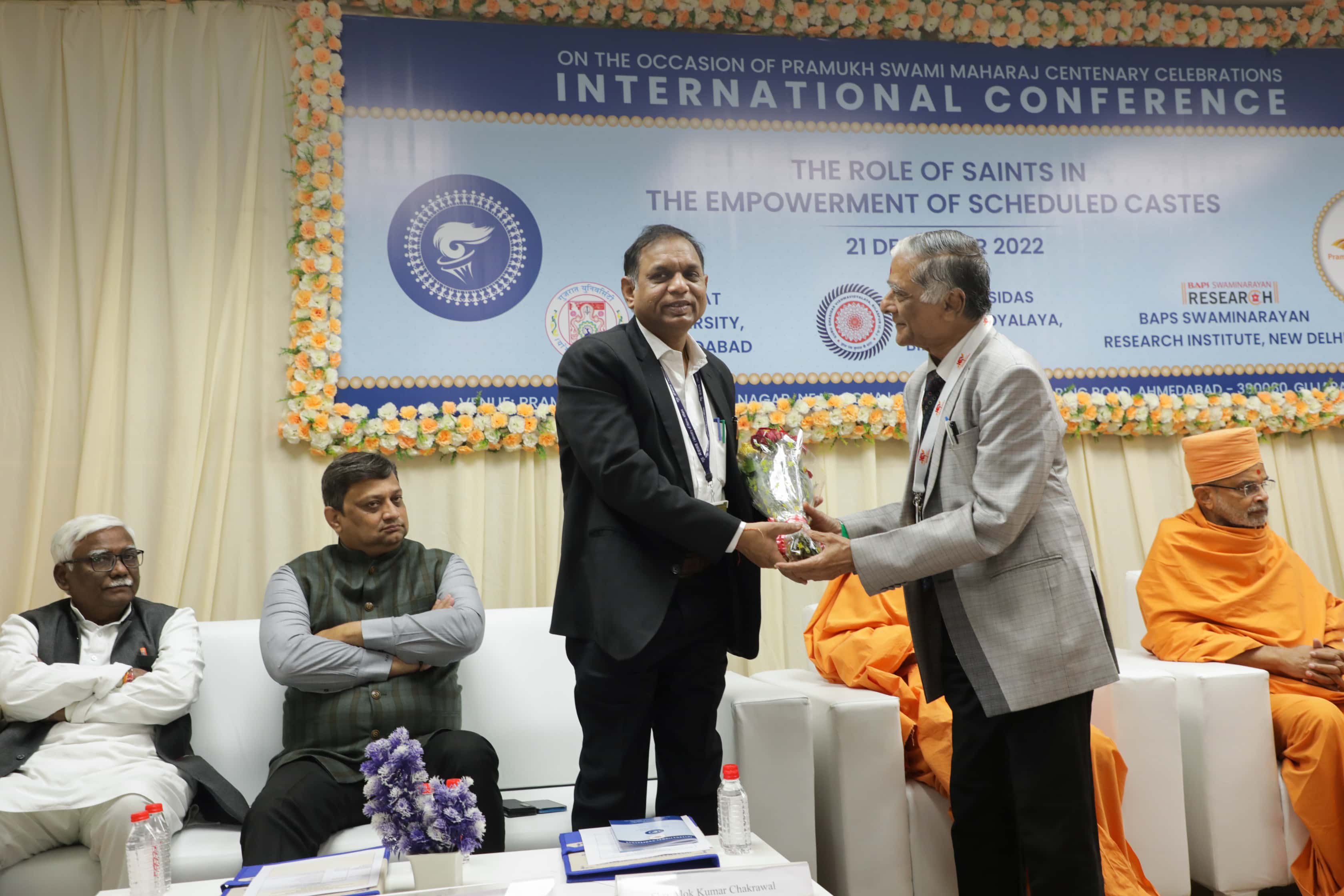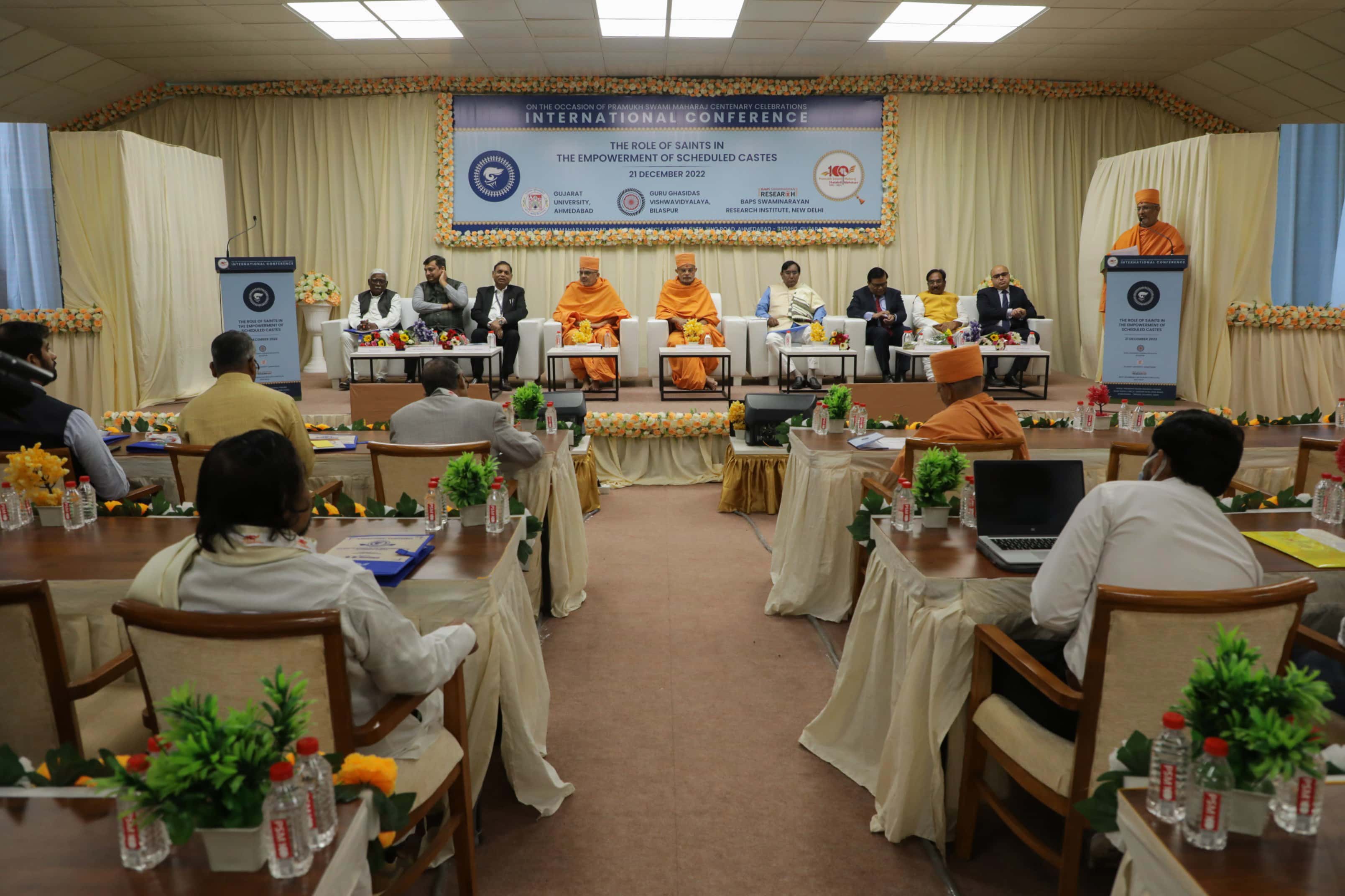 An international academic conference on “The Role of Saints in the Empowerment of Scheduled Castes” was held on 21 December 2022 at the Pramukh Swami Maharaj Nagar in Ahmedabad. The conference was organized by the BAPS Swaminarayan Research Institute, New Delhi, in collaboration with Guru Ghasidas University, Bilaspur, and Gujarat University, Ahmedabad, as part of the centenary celebrations of His Holiness Pramukh Swami Maharaj.
