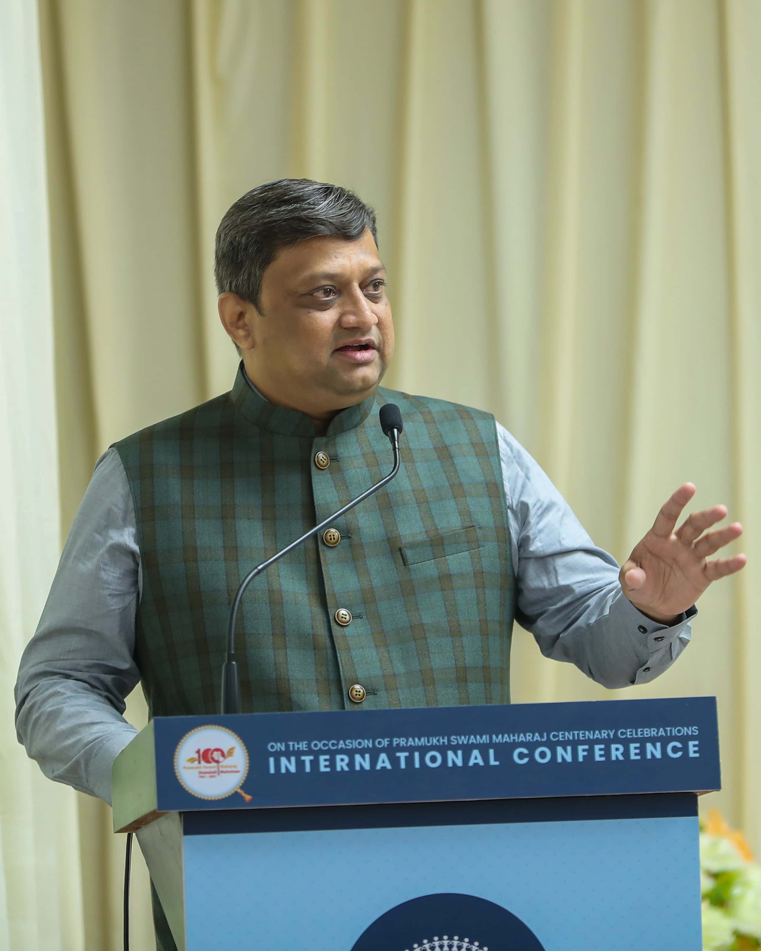 Thereafter, Shri Ramanlal Vora emphasized the role of the Swaminarayan tradition in establishing social harmony while keeping spirituality at its center. Shri Kishor Makwana also remarked that the conference was a tribute to Pramukh Swami Maharaj’s proficiency in translating social awareness into constructive action.