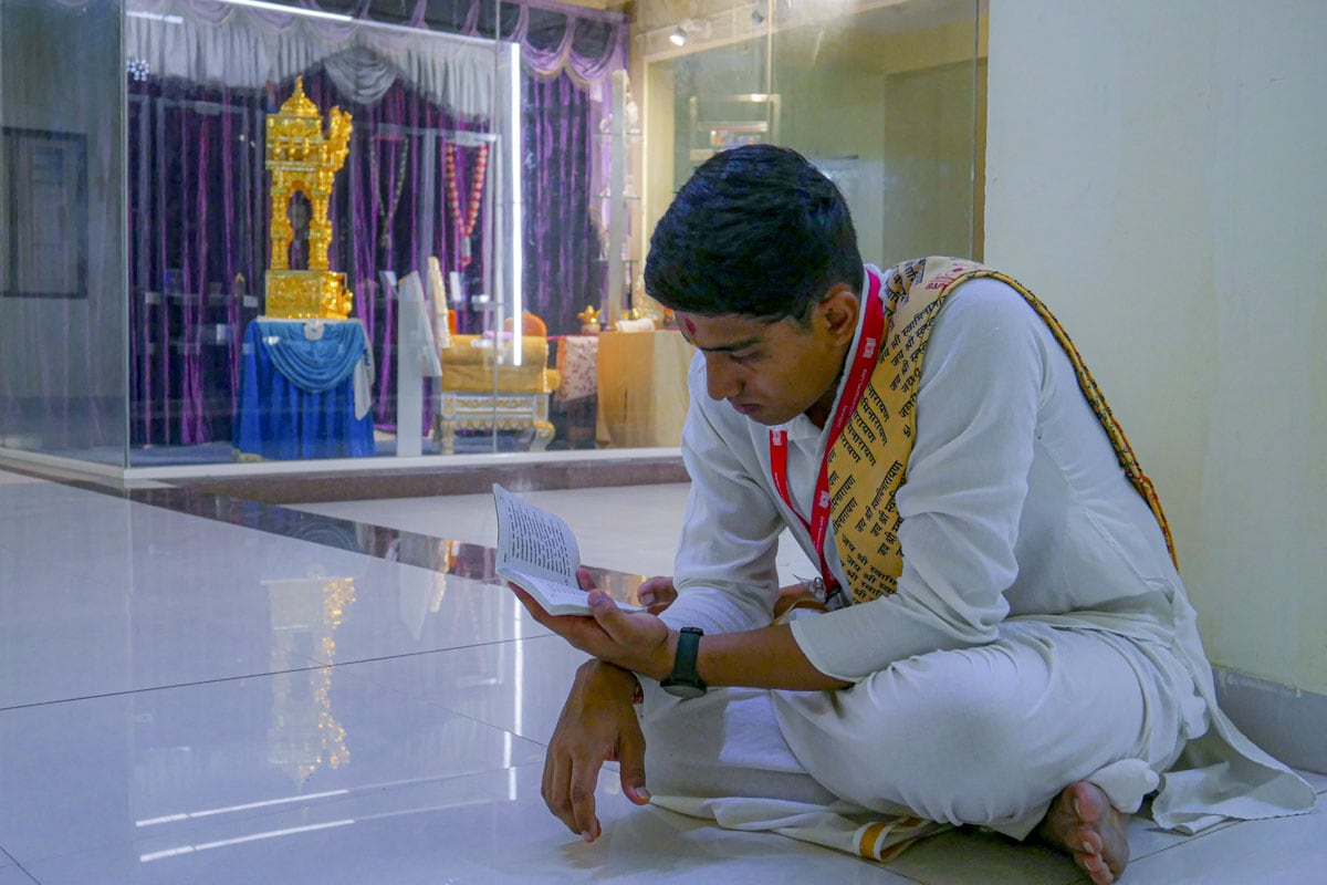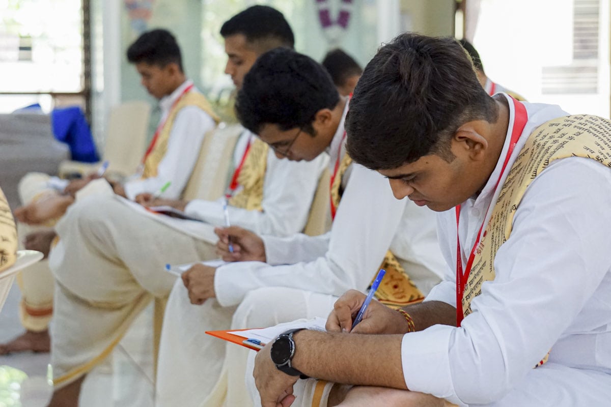 The Swaminarayan Siddhanta Karika is an extract from the Akshar-Purushottam Darshan, which reveals the teachings of Bhagwan Swaminarayan. The students worked hard to memorize its 565 Sanskrit verses (karikas). The Mahotsav began on the afternoon of 4 August in Nenpur, where they were assessed through written and oral examinations.