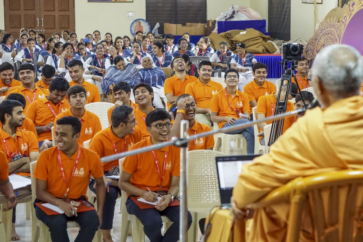 On the morning of 5 August the students participated in samuh puja and chorus singing of the Karika and Satsang Diksha. Thereafter, the students received experienced guidance from Shrutiprakashdas Swami, Bhadreshdas Swami and Atmatruptdas Swami.
