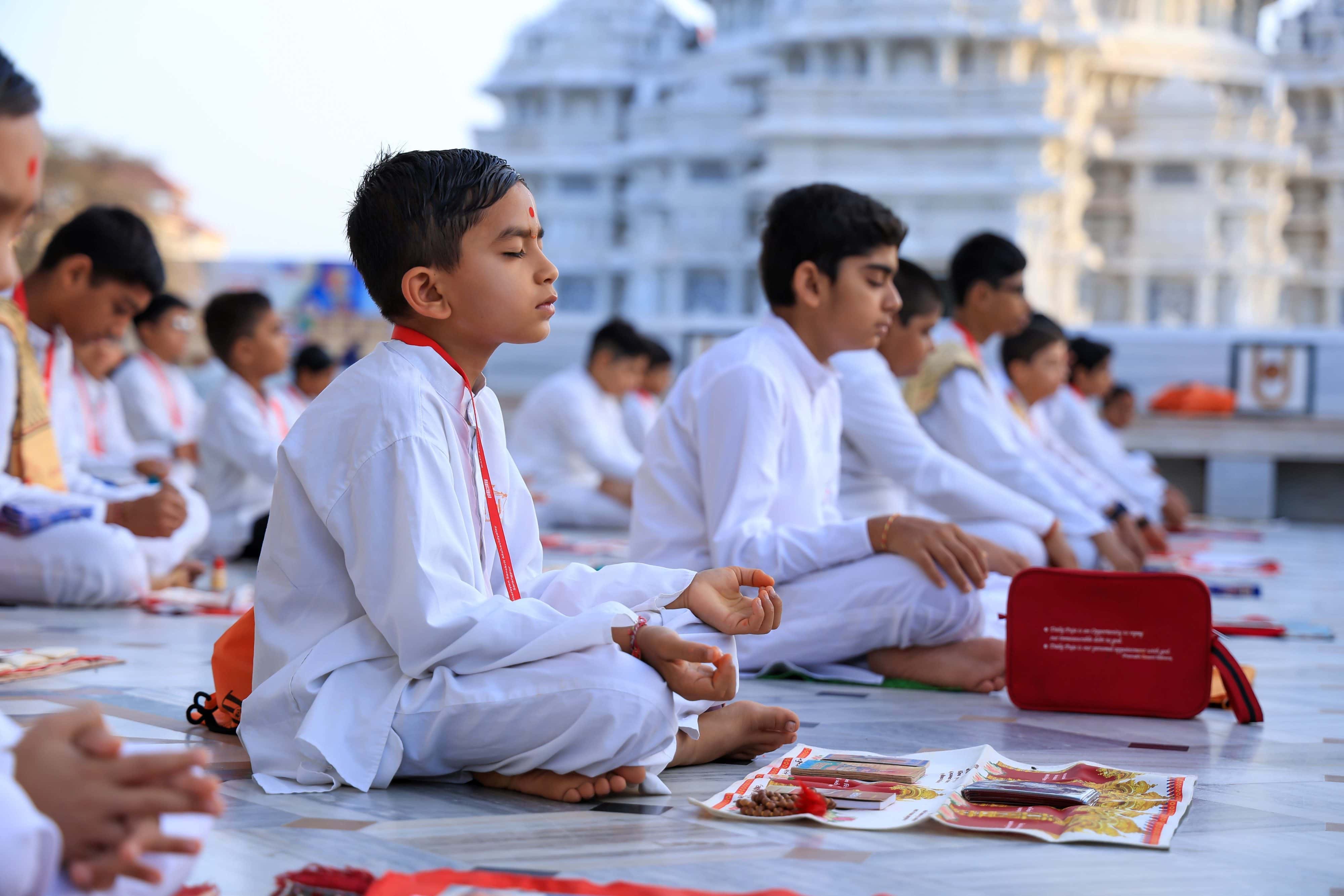 Balaks performing Samuh Puja at Shastriji Maharaj Smruti Mandir