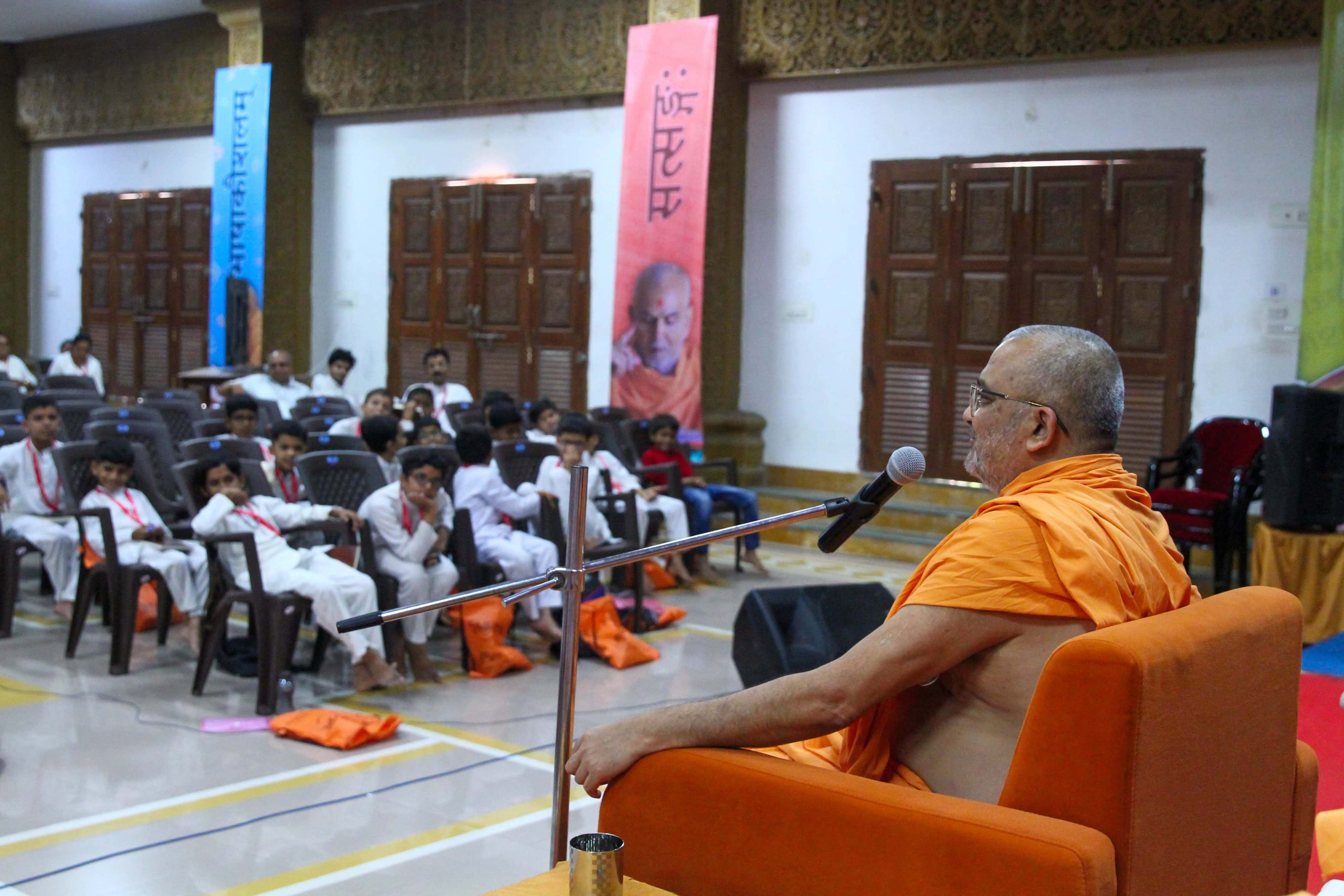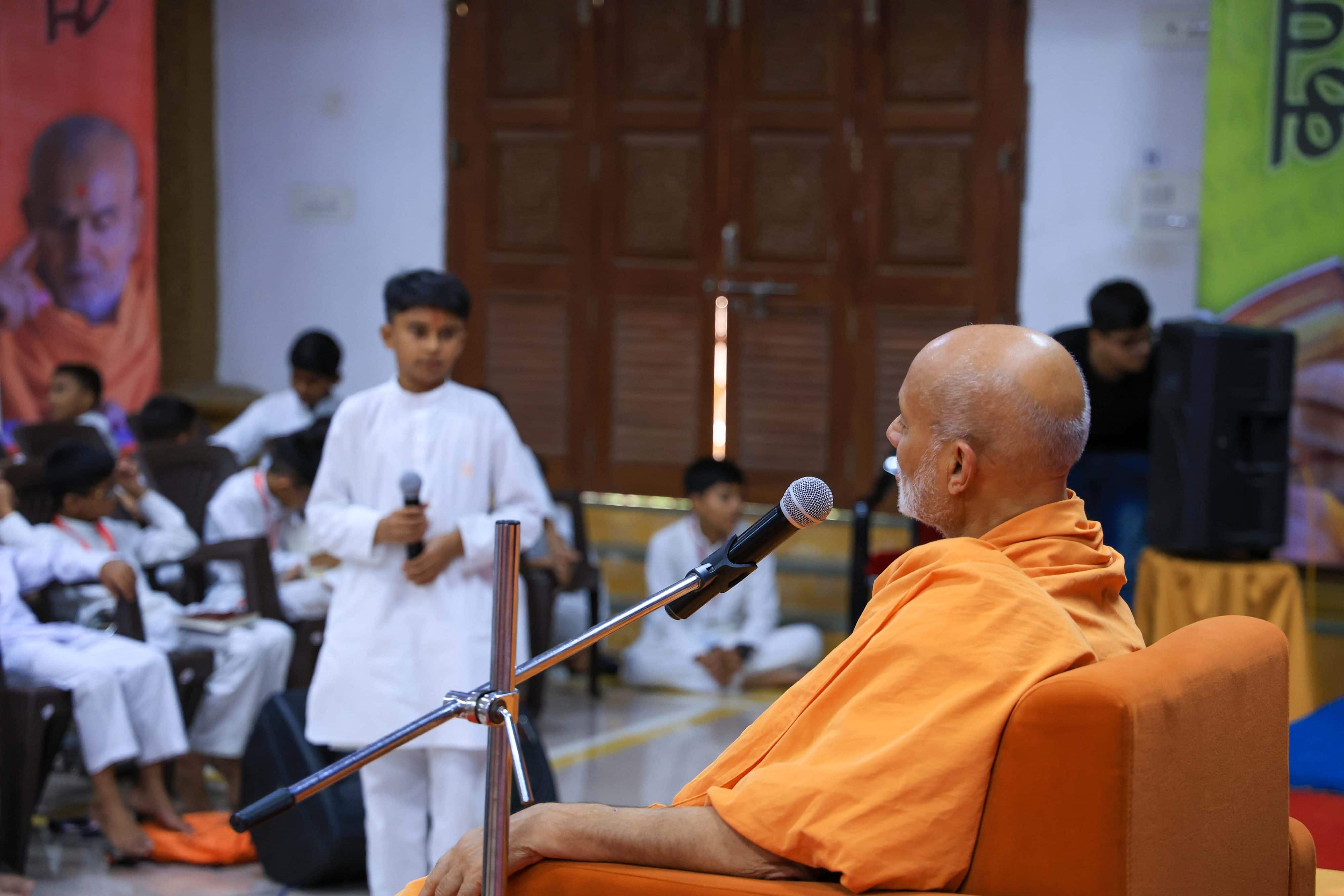 The children also benefited from the direct guidance of learned and senior saints, and learned teachers of the BAPS Swaminarayan Sanskrit Mahavidyalaya (Sarangpur). In a session with Viveksagardas Swami, the children learnt about enjoying and concentrating on their Sanskrit studies. The children also received the blessings of and had an impromptu Q & A with Guruhari Mahant Swami Maharaj through an online evening session on 17 May.