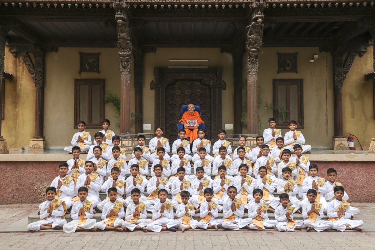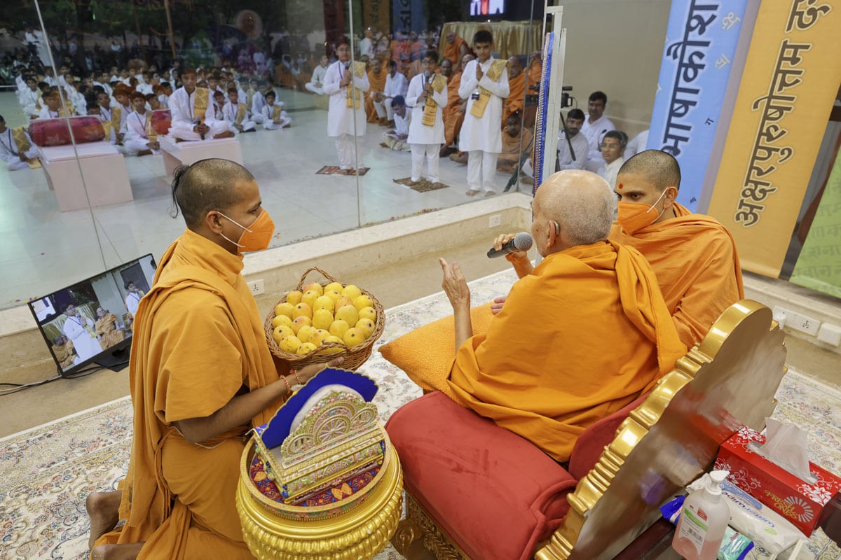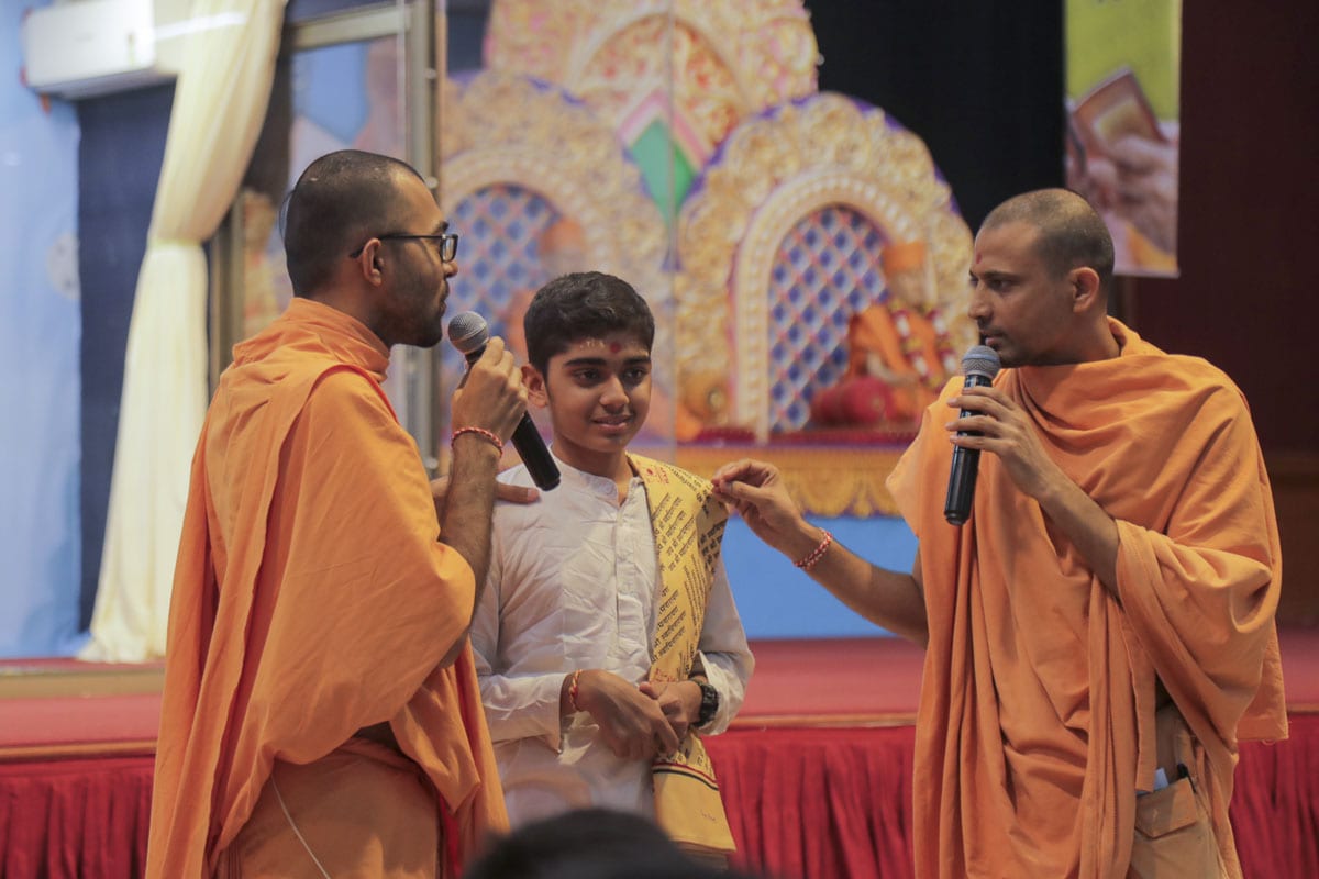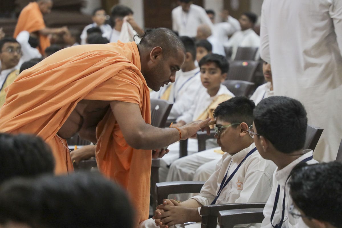The children also had a special assembly in the divine presence of guruhari Mahant Swami Maharaj on 28 May. During this assembly, they presented shlokas and were felicitated for their achievements. The children also recited shlokas in Mahant Swami Maharaj’s puja on 29 and 30 May.