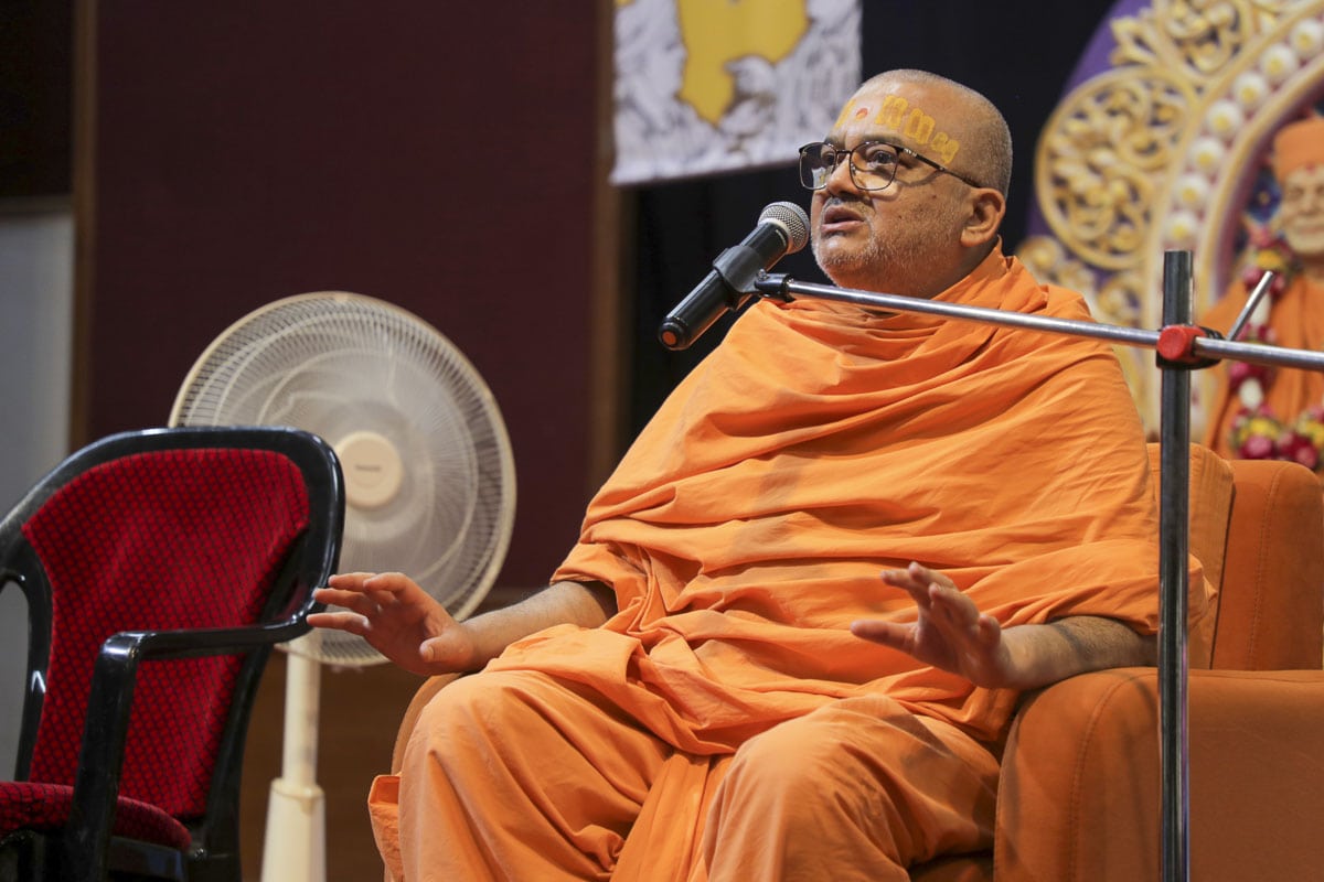 To mark the completion of the first year of the ‘Satsang Diksha Adhyayan’ course and the second year of the ‘Siddhant Sarvasvam’ course, a four-day shibir themed ‘Siddhant Sarvasvam’ was organized in Sarangpur in the presence of Mahant Swami Maharaj.