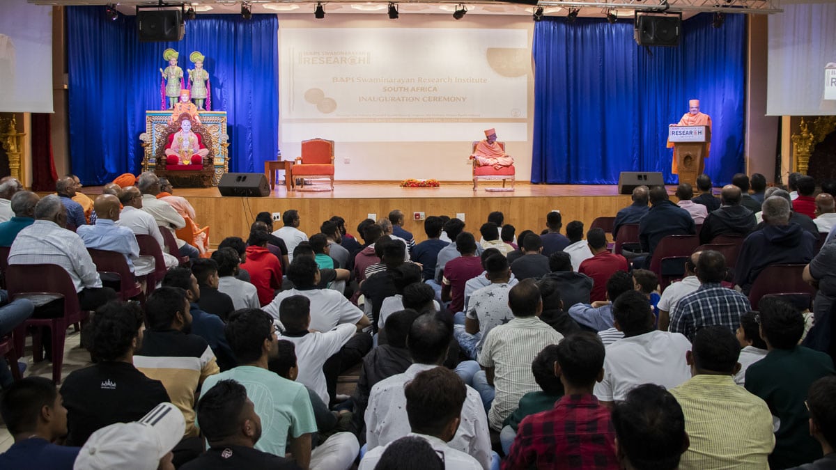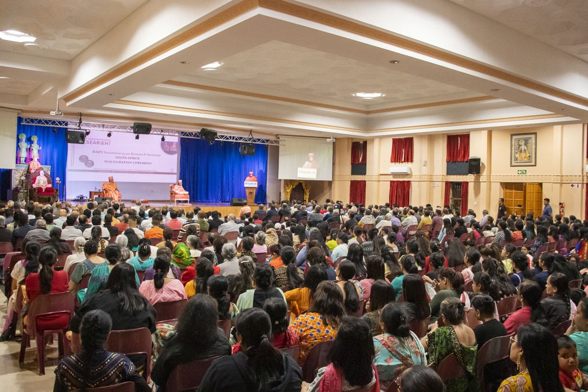 As part of the birth centenary celebrations of Pujya Pramukh Swami Maharaj, the BAPS Swaminarayan Research Institute in South Africa was ceremoniously inaugurated at the BAPS Swaminarayan Mandir, Lenasia, South Africa. The inauguration assembly took place in the esteemed presence of Mahamahopadhyay Bhadreshdas Swami, other swamis and learned guests from the world of academia, as well as 600 devotees and well-wishers.