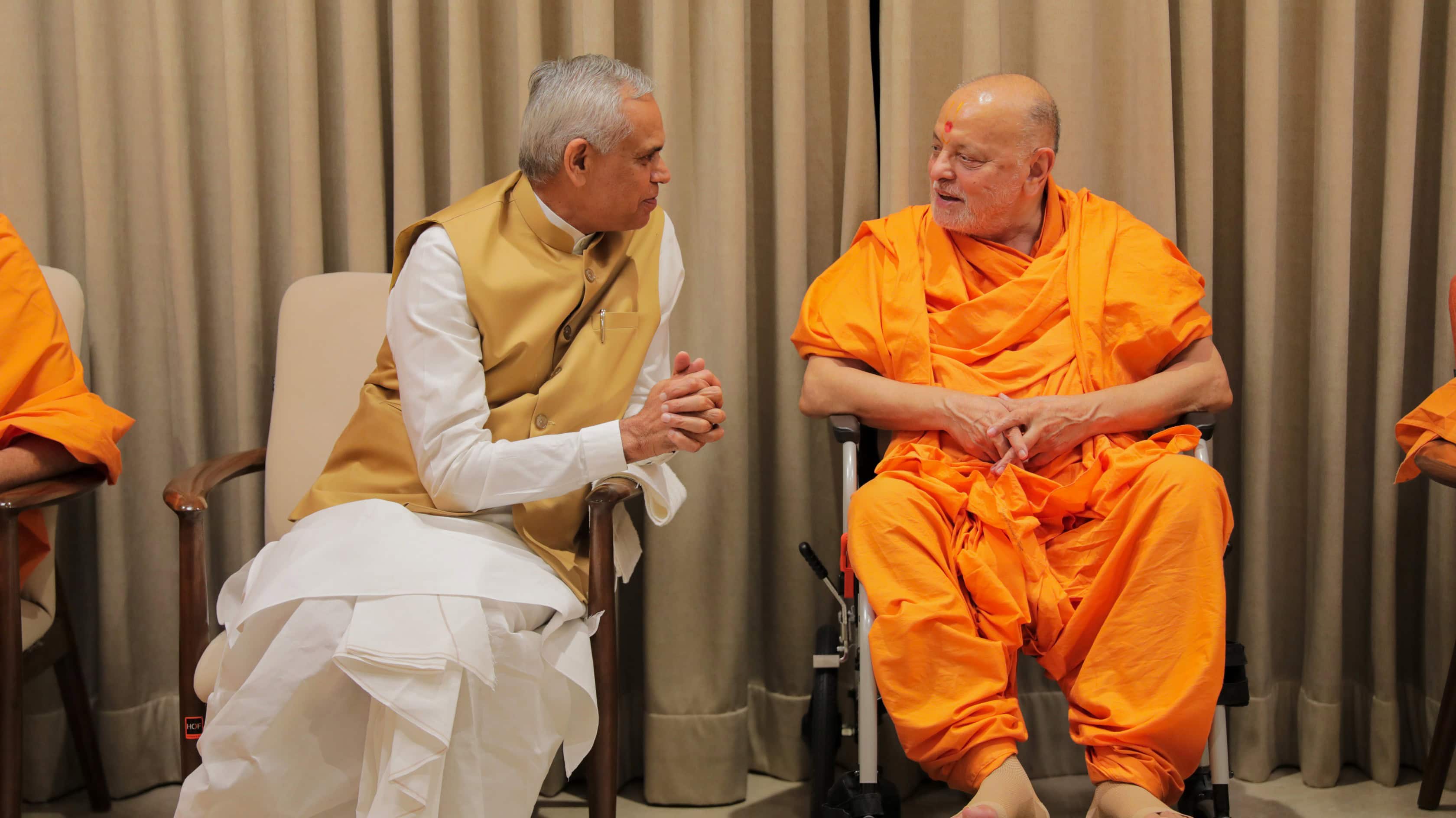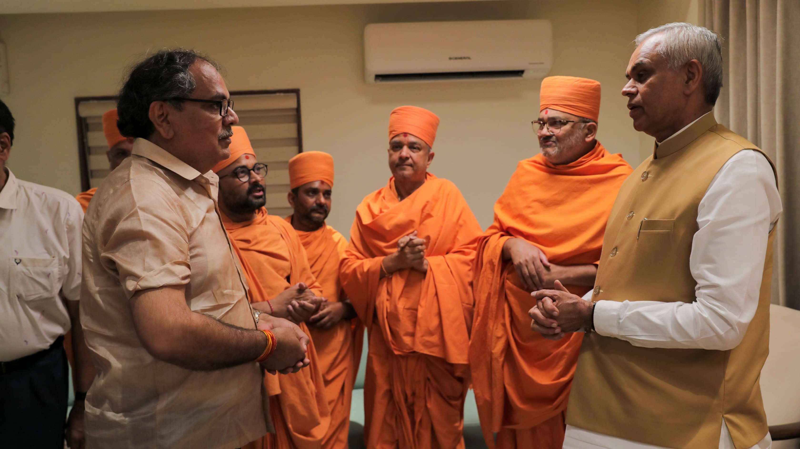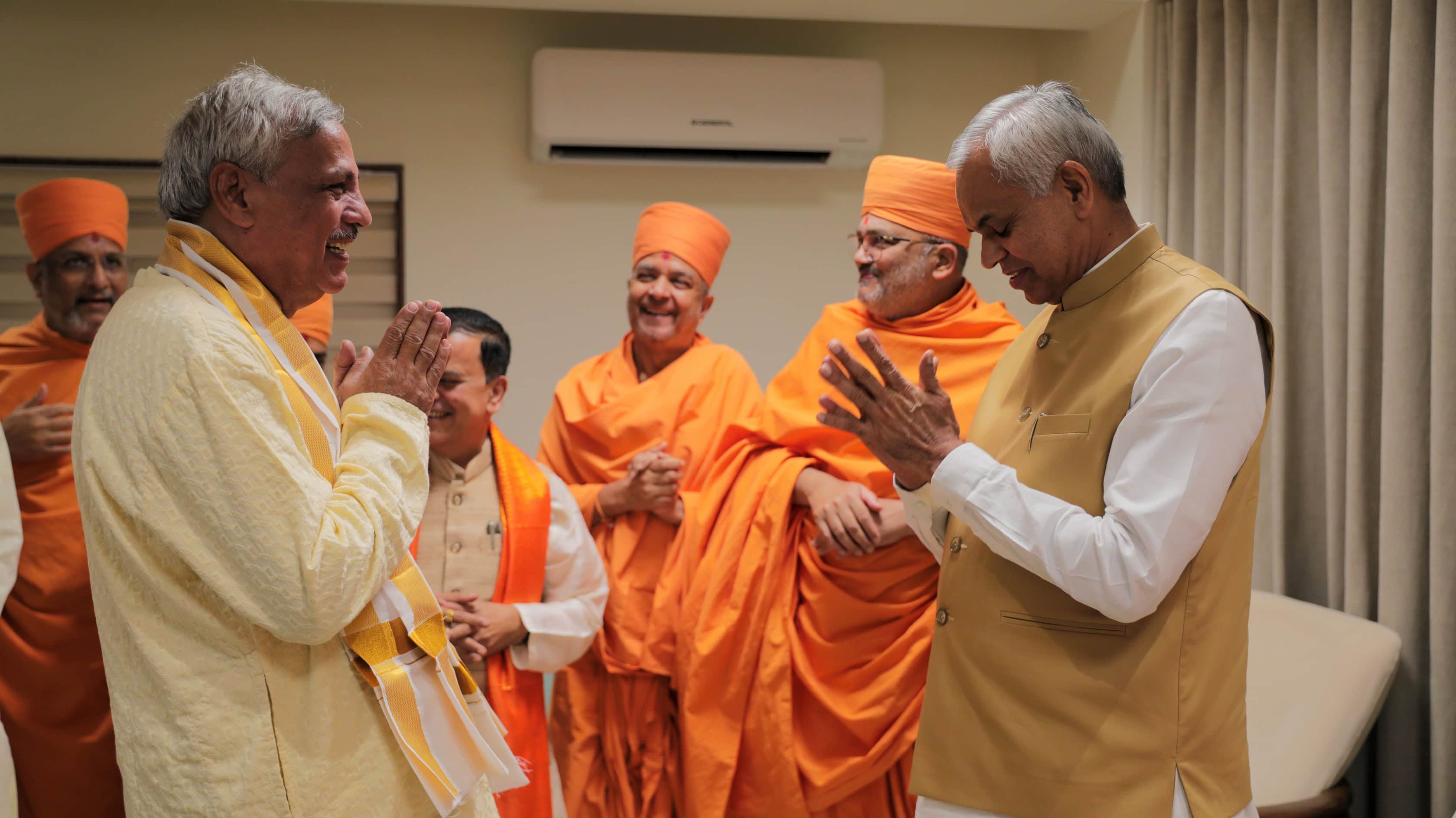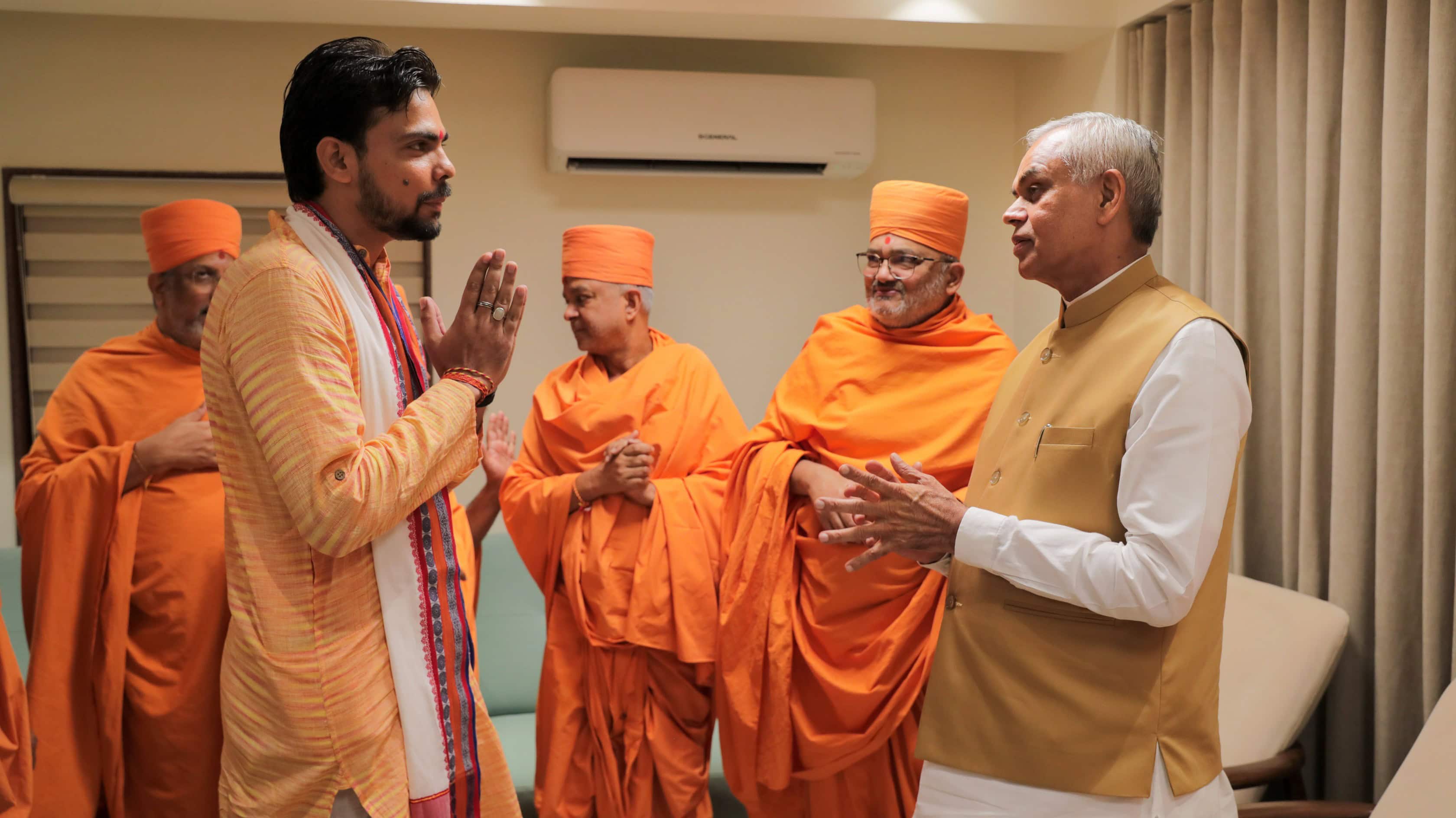 Swami Brahmviharidas welcomes Hon. Governor of Gujarat and Maharashtra Shri Acharya Devvratji