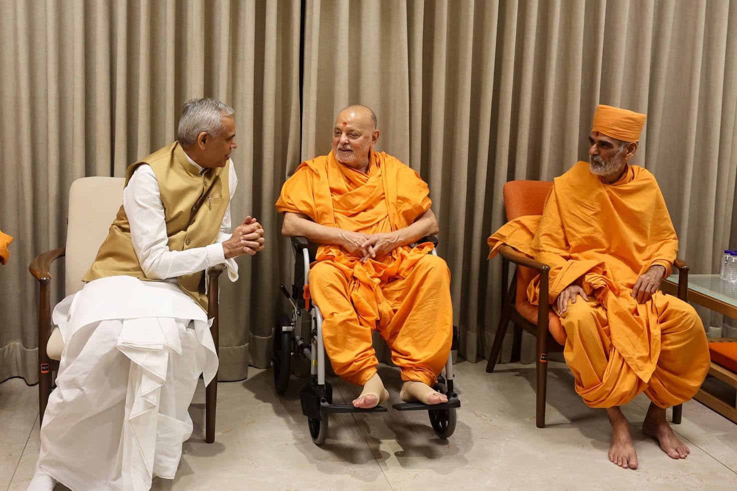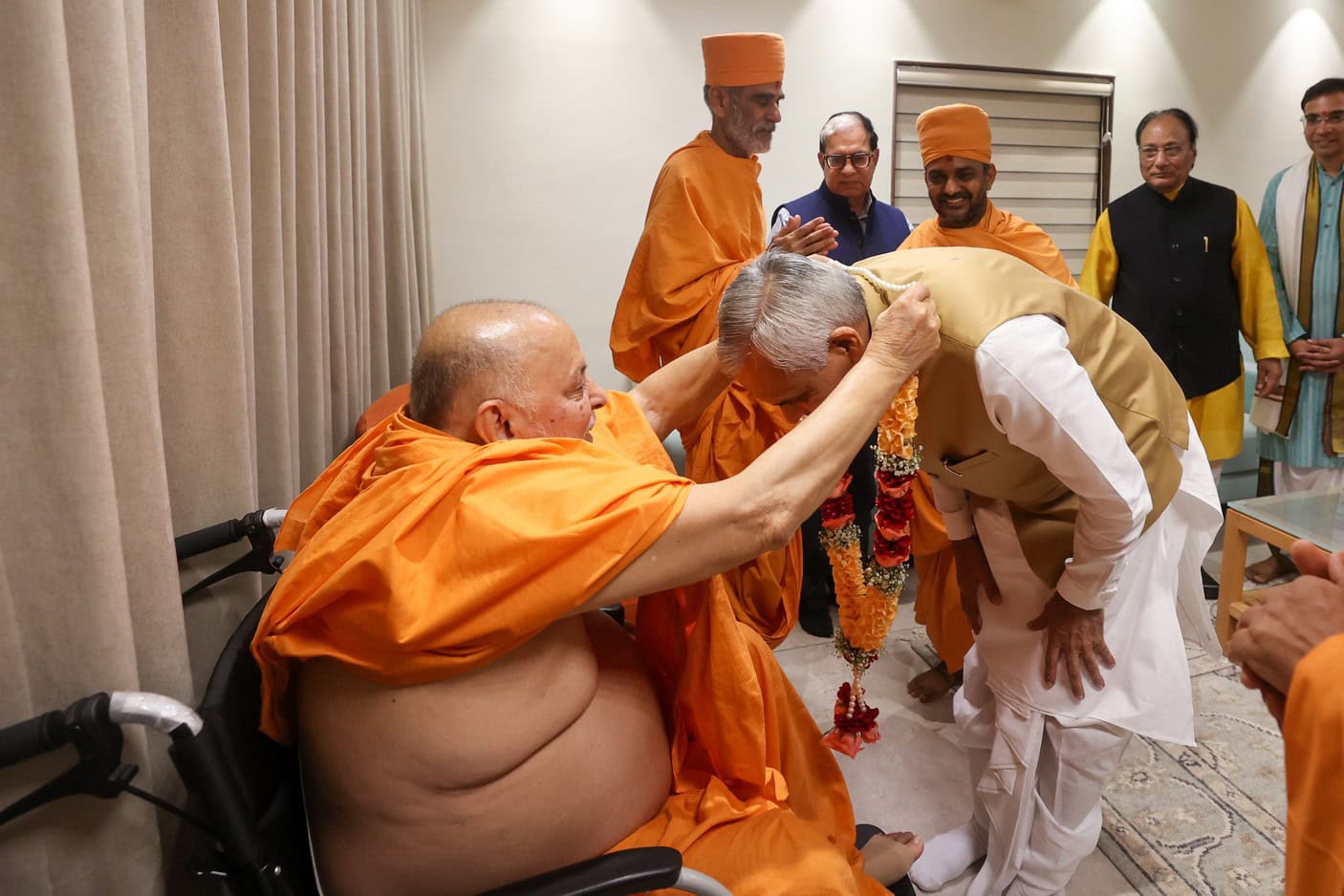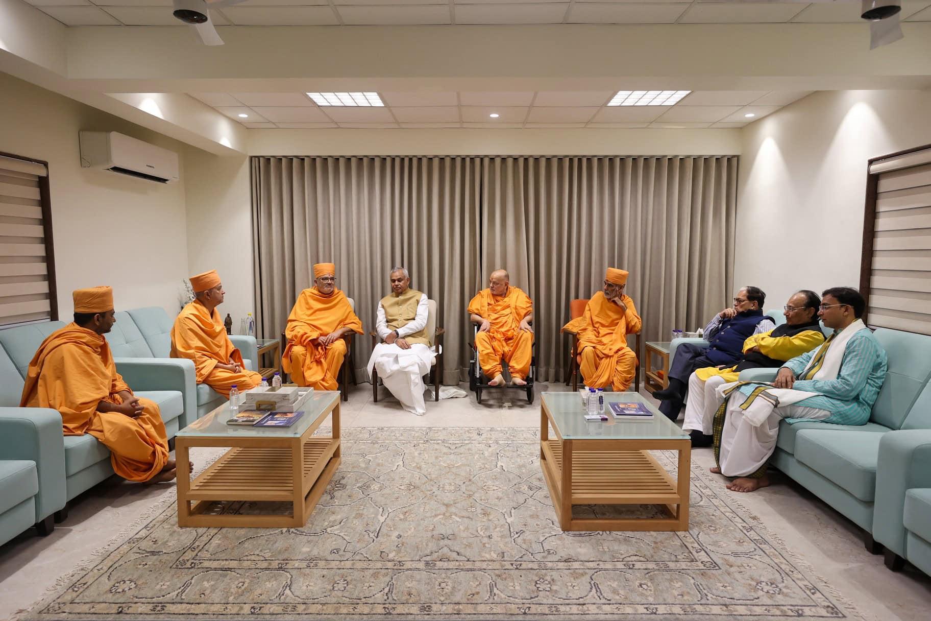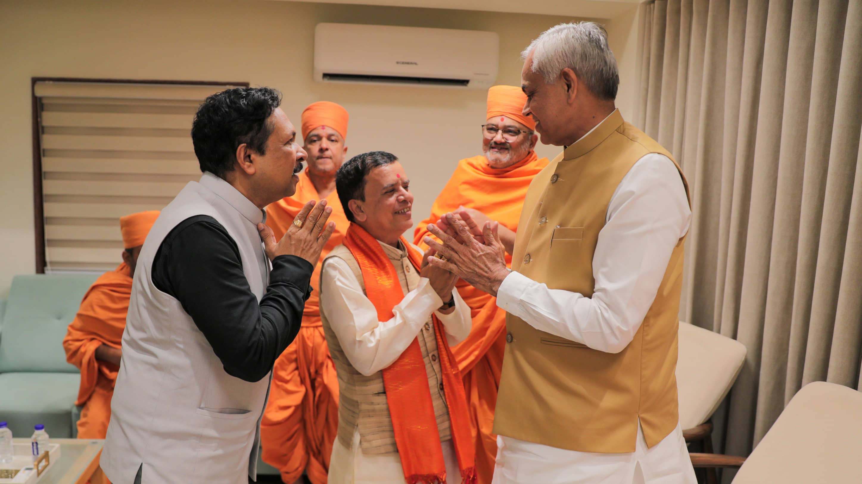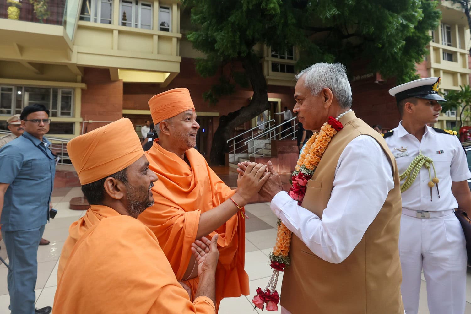 Swami Brahmviharidas welcomes Hon. Governor of Gujarat and Maharashtra Shri Acharya Devvratji