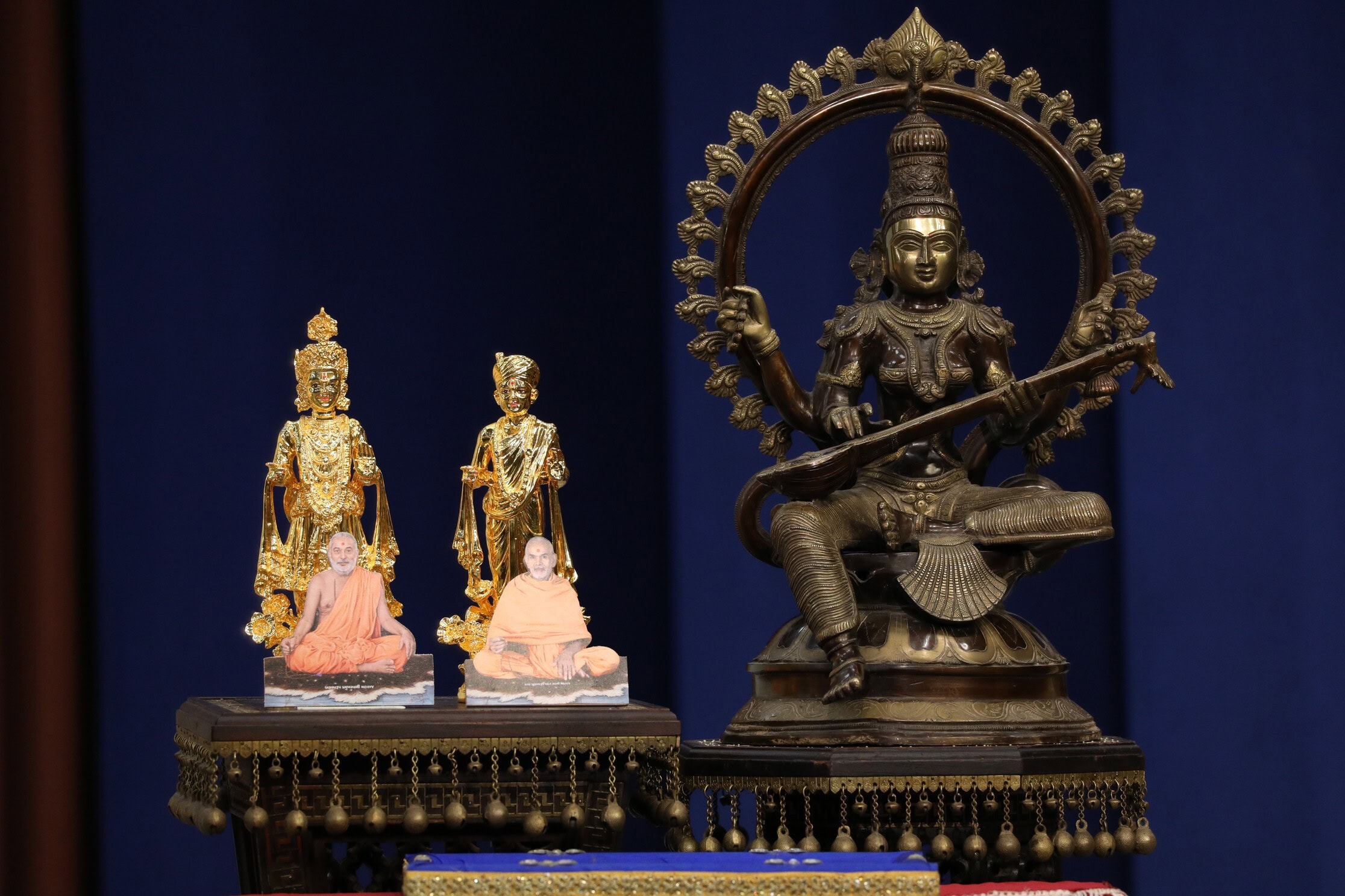 The sacred murtis of Akshar-Purushottam Maharaj and goddess Saraswati