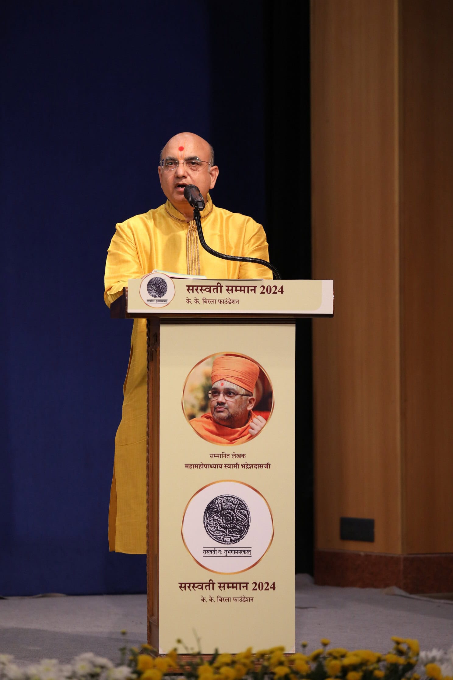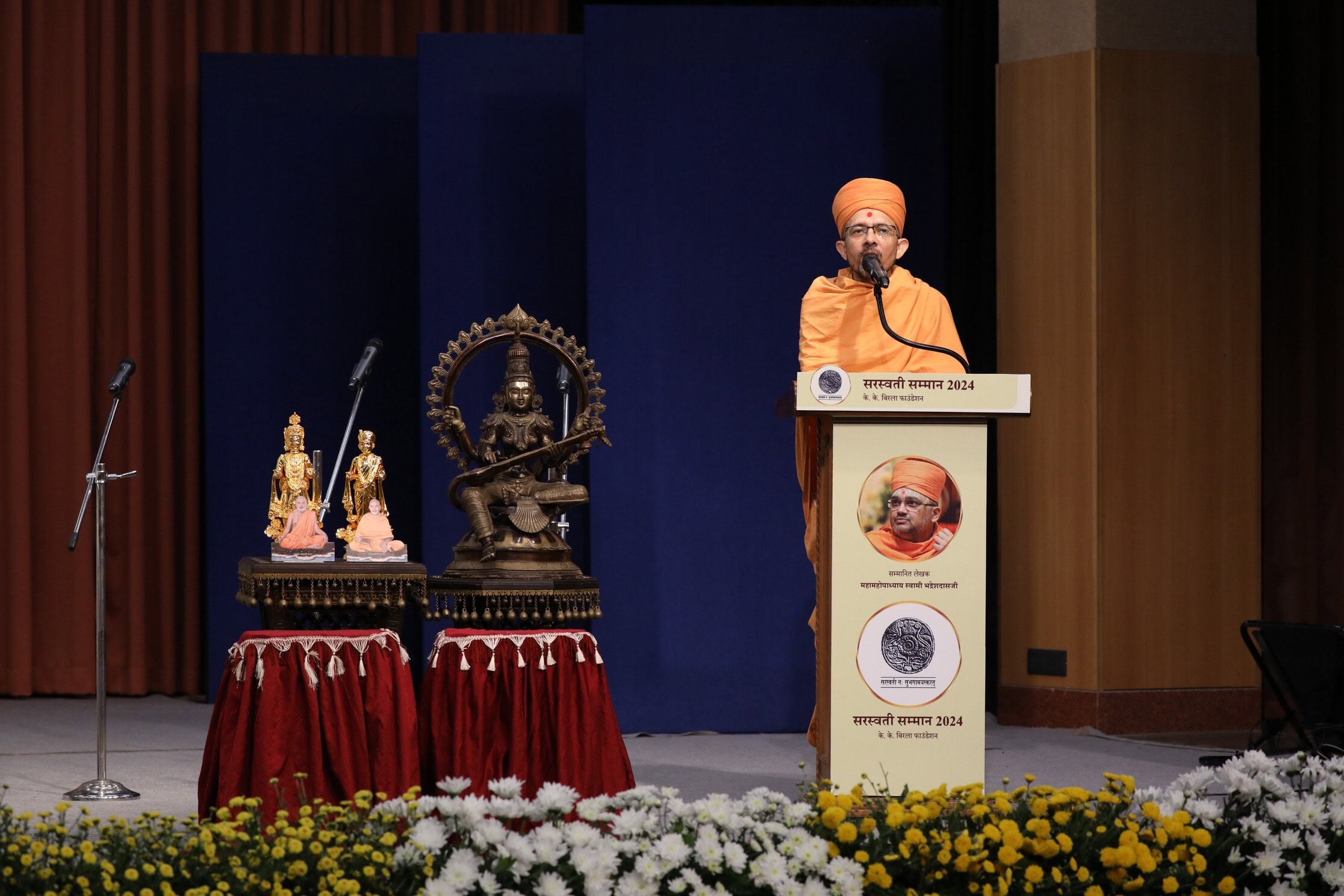 The Saraswati Puraskar for the year 2024 has been conferred upon Mahamahopadhyaya Swami Bhadreshdasji for his unparalleled Sanskrit treatise, the Swaminarayan-Siddhanta-Sudha.