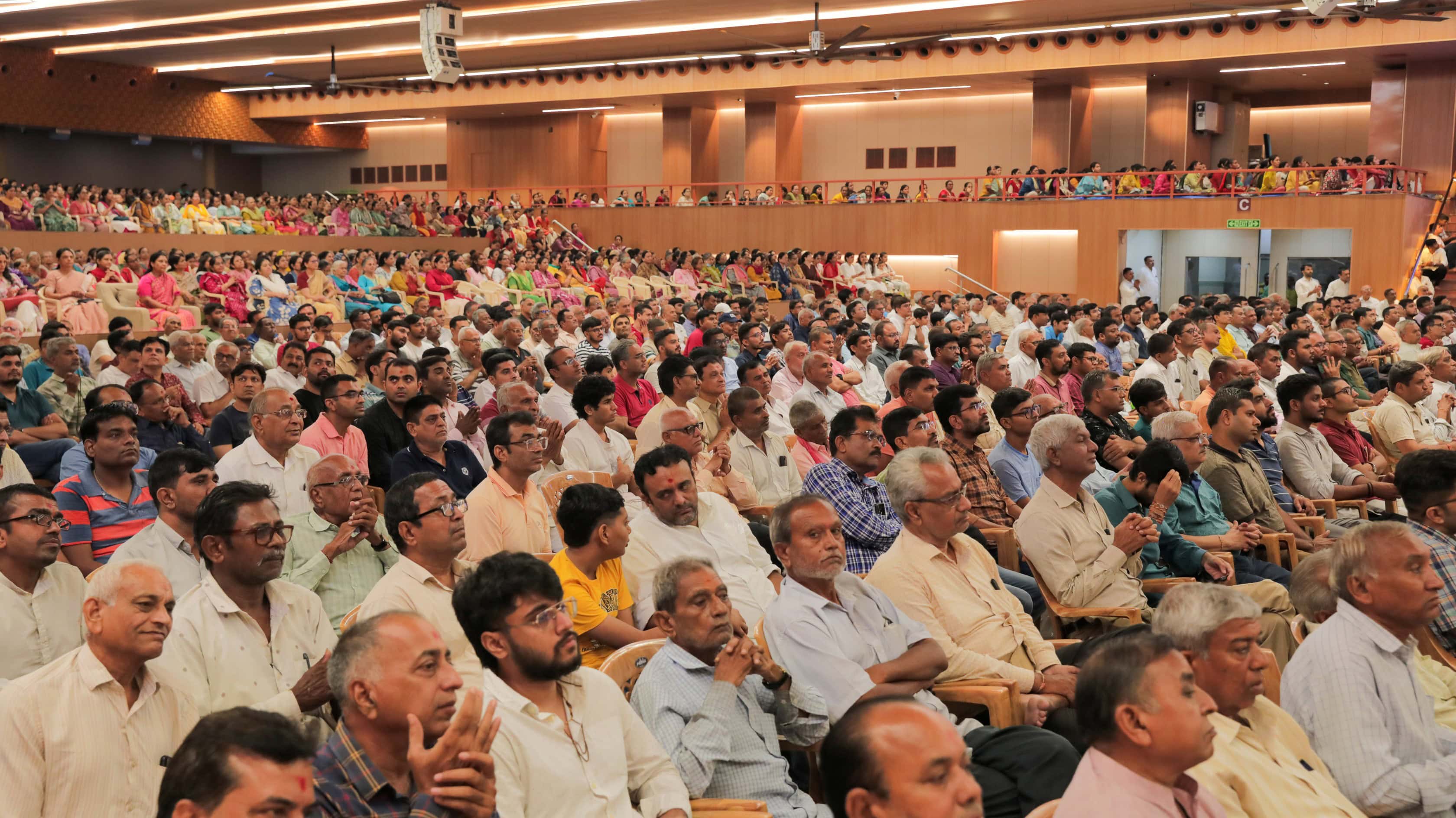 The assembly intently partakes in the Saraswati Samman Ceremony