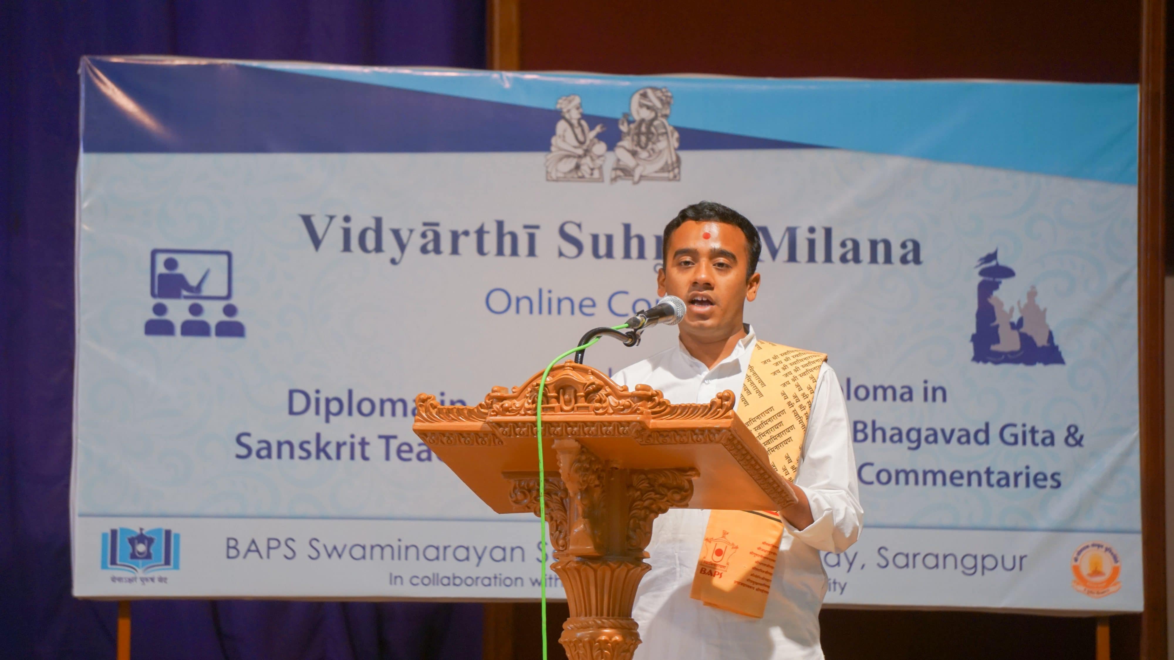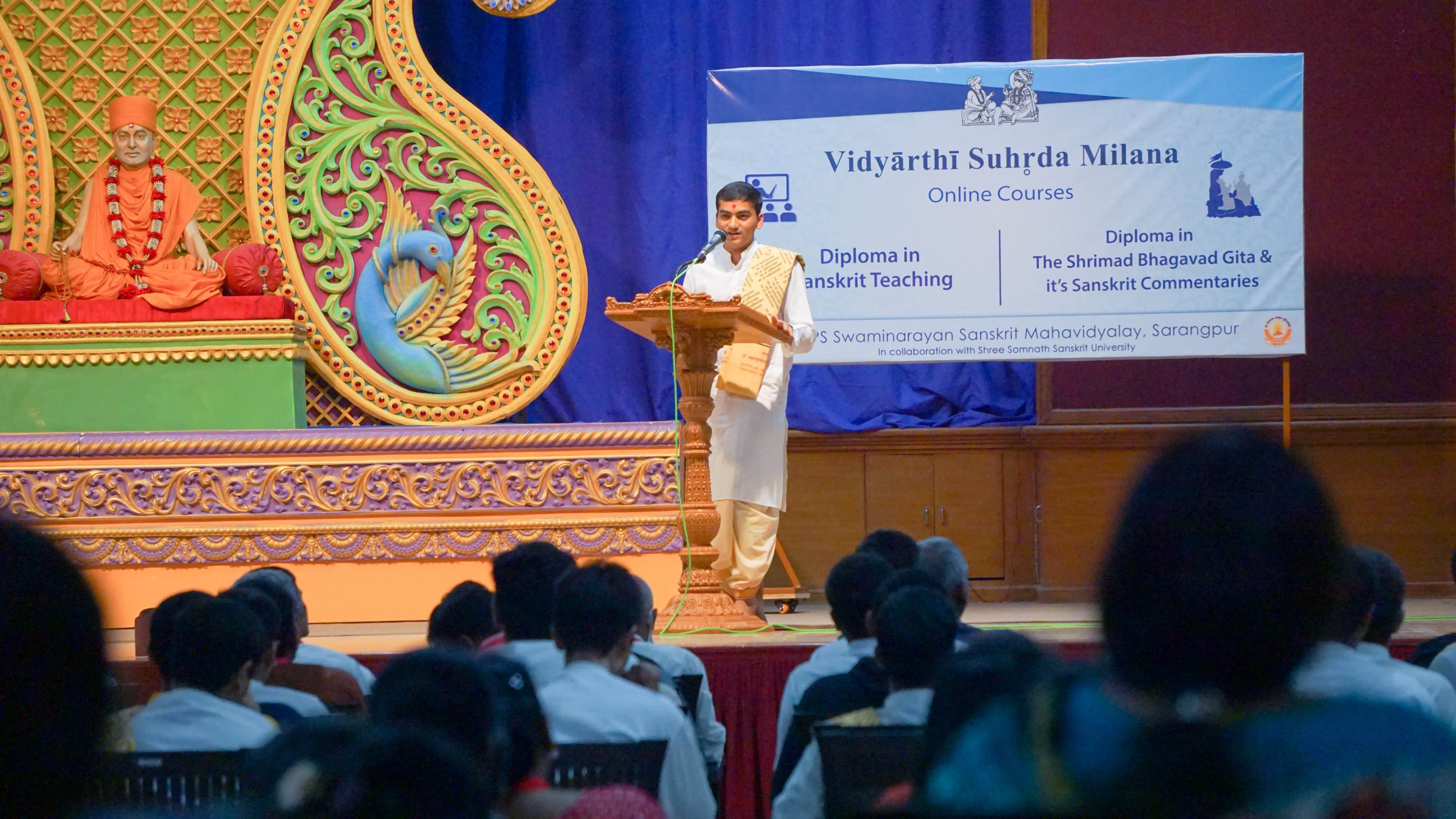 Since 2013 the BAPS Swaminarayan Sanskrit Mahavidyalay has been in affiliation with Shree Somnath Sanskrit University. Over the last year, it has been conducting online courses in Diploma Shrimad Bhagavat Gītā and its Sanskrit Commentaries and Sanskrit Teaching.
