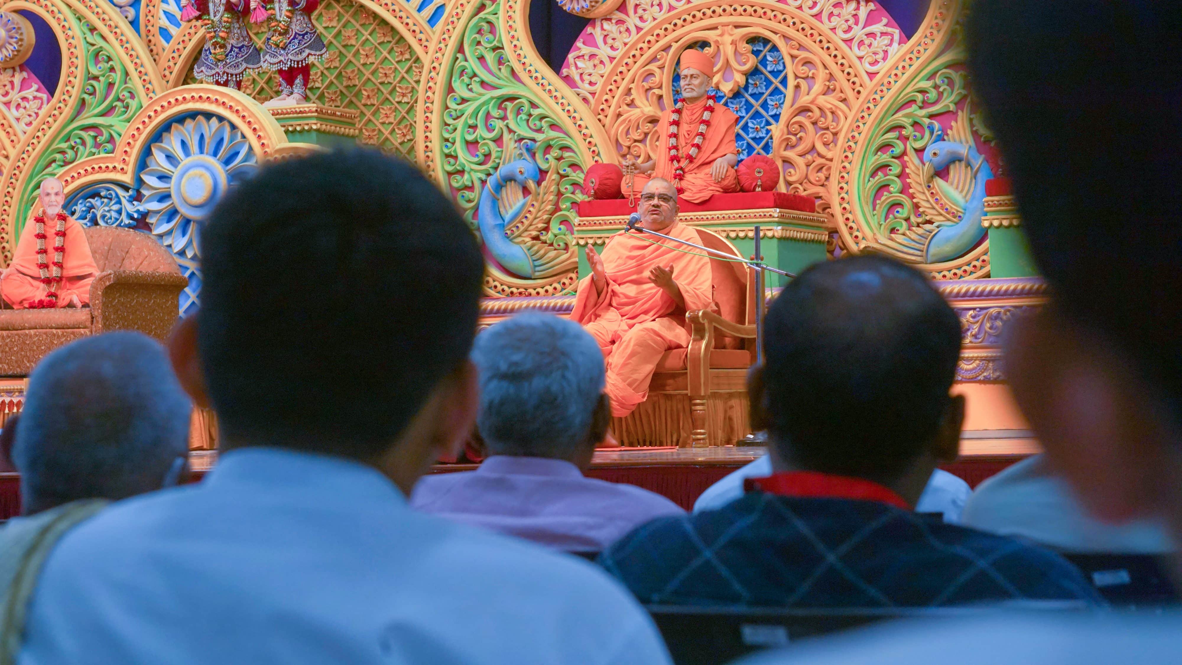 Anchored by Harikrishna Pedhadia, the second session titled, “What Next?” gave students insight into how completing the course provided them with new opportunities. Students were informed about potential job prospects and further study options. This was followed by an appreciation ceremony in which senior sadhus honored students who excelled in the course.