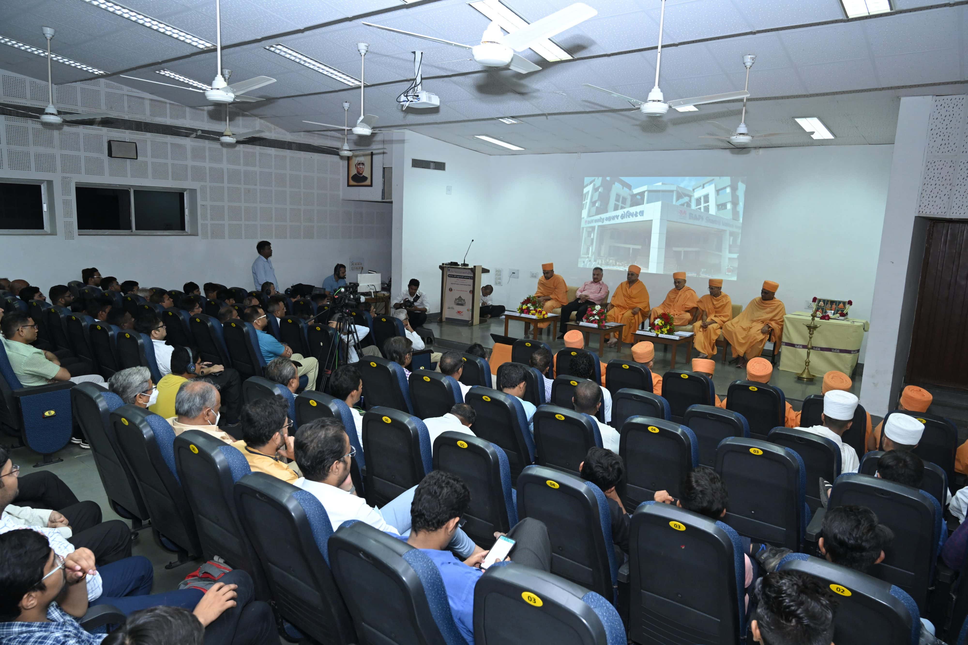 Under the auspices of the Brahmaswarup Pramukh Swami Maharaj Centenary Celebrations, Charutar Arogya Mandal Bhaikaka University, Karamsad in association with AARSH Research Institute, Swaminarayan Akshardham, Gandhinagar, organized a seminar on the topic ‘Pramukh Swami Maharaj’s Contributions in the Field of Healthcare’ at the Bhikhabhai Auditorium.