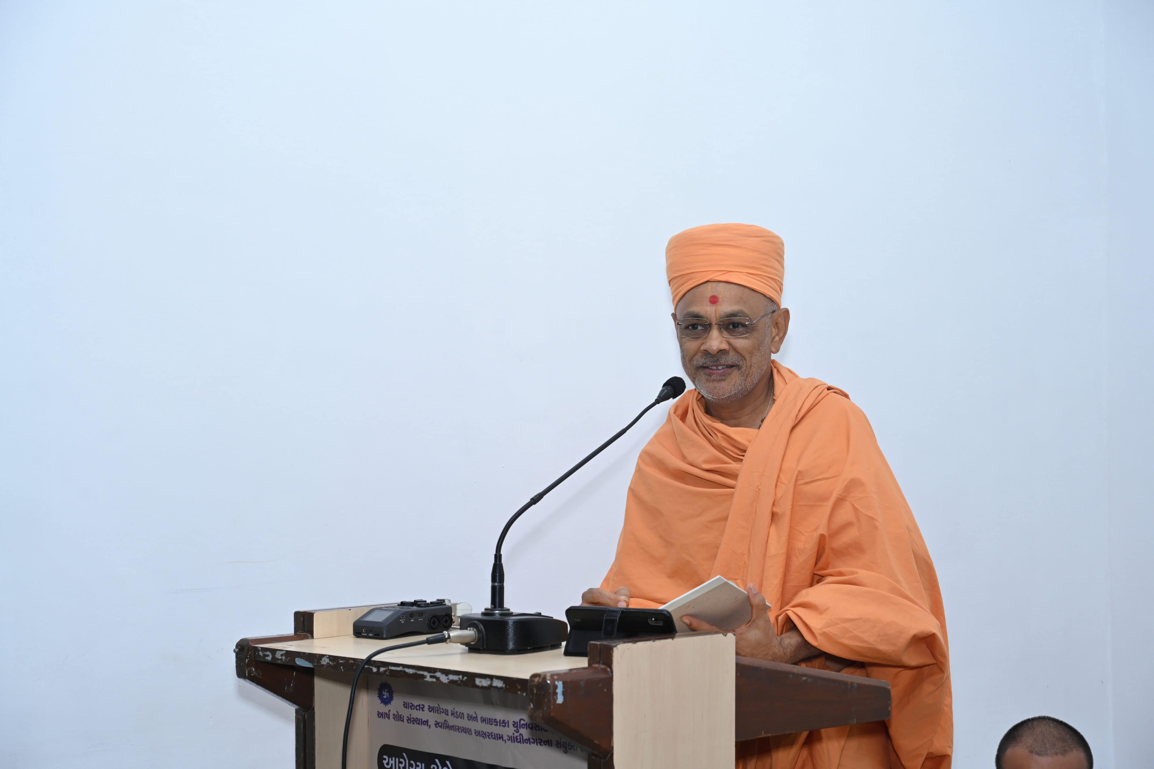 In his speech, Vedmanandas Swami of the BAPS Swaminarayan Mandir, Anand, highlighted the various BAPS healthcare activities inspired by Pramukh Swami Maharaj, such as, state-of-the-art hospitals , ambulance services, laboratory services, free mobile clinics and diagnostic camps, de-addiction campaigns and medico-spiritual conferences. Recently, during the COVID-19 pandemic, BAPS rendered commendable medical services throughout the world.