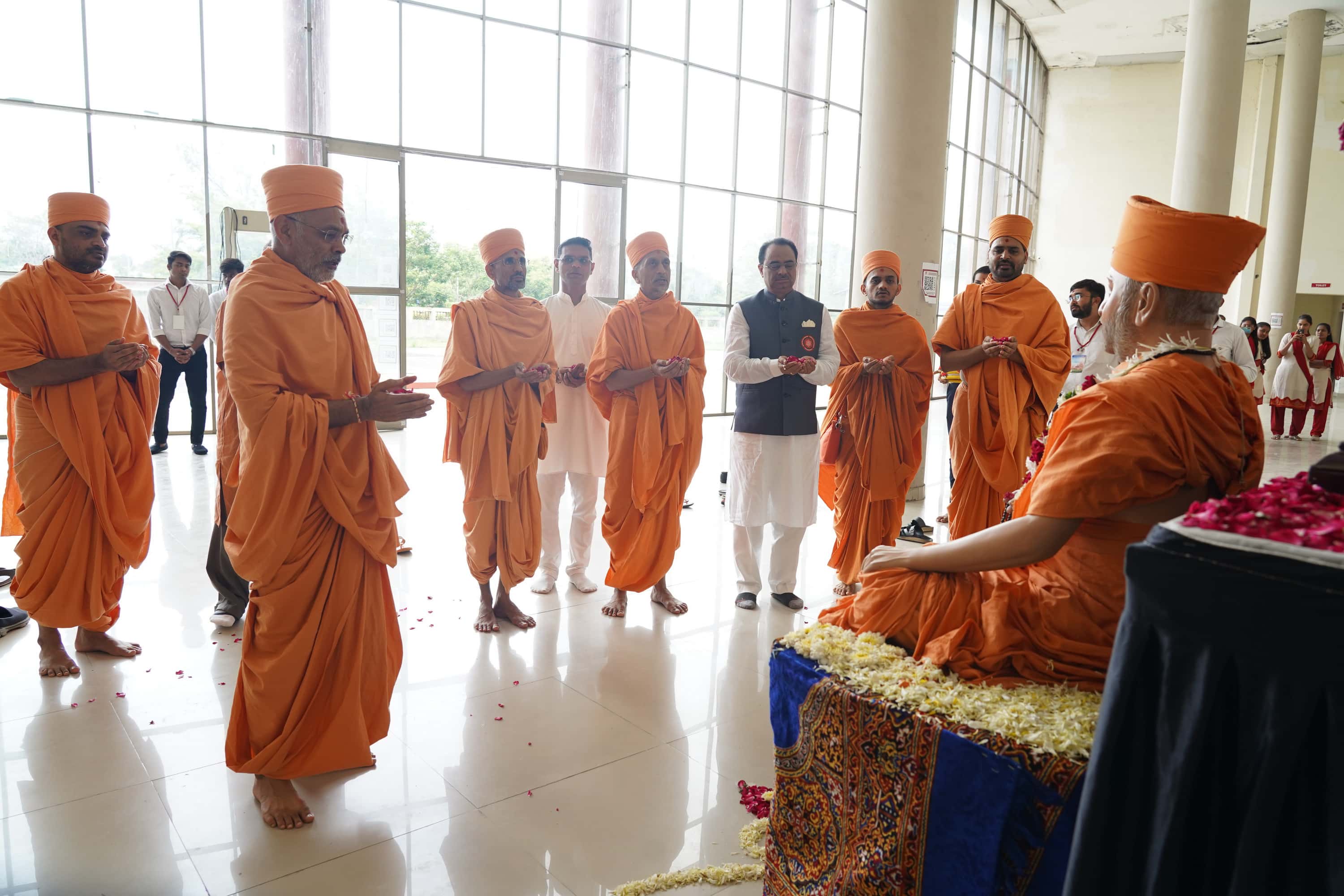 Following initial prayers and traditional lighting of the inaugural divo, a video highlighting Pramukh Swami Maharaj’s exemplary planning, decision-making and foresight was shown.