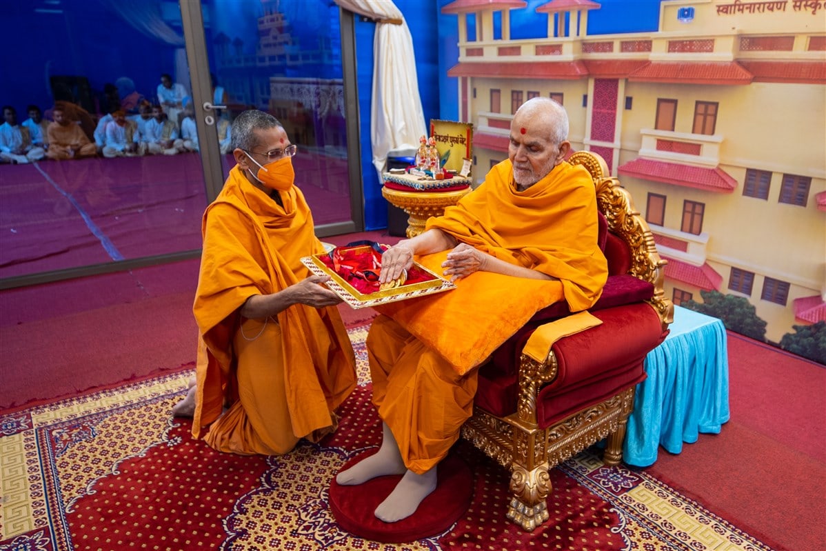 BAPS સ્વામિનારાયણ સંસ્કૃત મહાવિદ્યાલય, સારંગપુરની સ્થાપના સન્ 2013માં પરમ પૂજ્ય પ્રમુખસ્વામી મહારાજના વરદ હસ્તે થઈ હતી. આ વર્ષે એના 10 વર્ષ પૂર્ણ થઈ રહ્યા છે. આ દશાબ્દી વર્ષ નિમિત્તે તારીખ 25 માર્ચ 2023ના રોજ સારંગપુરમાં પરમ પૂજ્ય મહંતસ્વામી મહારાજના પ્રત્યક્ષ સાંનિધ્યમાં દશાબ્દી મહોત્સવના ઉદ્ધોષનું આયોજન થયું હતું. આ અંતર્ગત સ્વામીશ્રીના પ્રાતઃ પૂજા દર્શનમાં વિદ્યાર્થીઓએ સ્વરચિત સંસ્કૃત તથા ગુજરાતી કીર્તન તથા મહાવિદ્યાલયના ધ્યેયગીતનું ગાન કર્યું હતું. આ ઉપરાંત પ્રસ્થાનત્રયીમાં આવતા બ્રહ્મ પરબ્રહ્મના મહિમાવાચક મંત્રો તથા શ્લોકોના મુખપાઠની પણ રજૂઆત થઈ હતી. ત્યારબાદ સાયં સભામાં પૂજ્ય વિવેકસાગર સ્વામી તથા પૂજ્ય આત્મતૃપ્ત સ્વામીએ પોતાના વક્તવ્ય દ્વારા મહાવિદ્યાલયની વિશેષતાઓ દર્શાવી. મહાવિદ્યાલયના પ્રાધ્યાપકો દ્વારા પરમ પૂજ્ય મહંતસ્વામી મહારાજની સમક્ષ મહાવિદ્યાલયના દશ વર્ષનો સંક્ષિપ્ત અહેવાલ અપાયો. આ મહાવિદ્યાલય શ્રી સોમનાથ સંસ્કૃત યુનિવર્સિટી, વેરાવળ સાથે સંલગ્ન છે તેમાં વર્ષ 2022માં શાસ્ત્રી તથા આચાર્ય કક્ષાની જે પરીક્ષા લેવાઈ હતી, તેમાં સમગ્ર વિષયોમાં સુવર્ણચંદ્રક અને રજતચંદ્રક BAPS સ્વામિનારાયણ સંસ્કૃત મહાવિદ્યાલયના વિદ્યાર્થીઓએ પ્રાપ્ત કર્યા હતા, તે વિદ્યાર્થીઓનું પણ સન્માન કરવામાં આવ્યું. આ સભામાં વિદ્યાર્થીઓએ સંવાદ તથા નૃત્ય જેવા ભક્તિપૂર્ણ સાંસ્કૃતિક કાર્યક્રમો રજૂ કર્યા. આ સાથે સ્વામીશ્રી સમક્ષ પ્રાર્થના તથા પ્રશ્નોત્તરી દ્વારા અભ્યાસ અને આધ્યાત્મિતાનું પુષ્ટિદાયક માર્ગદર્શન પ્રાપ્ત થયું. અંતે પરમ પૂજ્ય મહંતસ્વામી મહારાજે BAPS સ્વામિનારાયણ સંસ્કૃત મહાવિદ્યાલય દશાબ્દી મહોત્સવના જયનાદનો ઉદ્ધોષ કરાવ્યો. આમ, ભવ્યતા અને દિવ્યતા સાથે BAPS સ્વામિનારાયણ સંસ્કૃત મહાવિદ્યાલયના દશાબ્દી મહોત્સવના ઉદ્ઘોષનો કાર્યક્રમ સંપન્ન થયો.