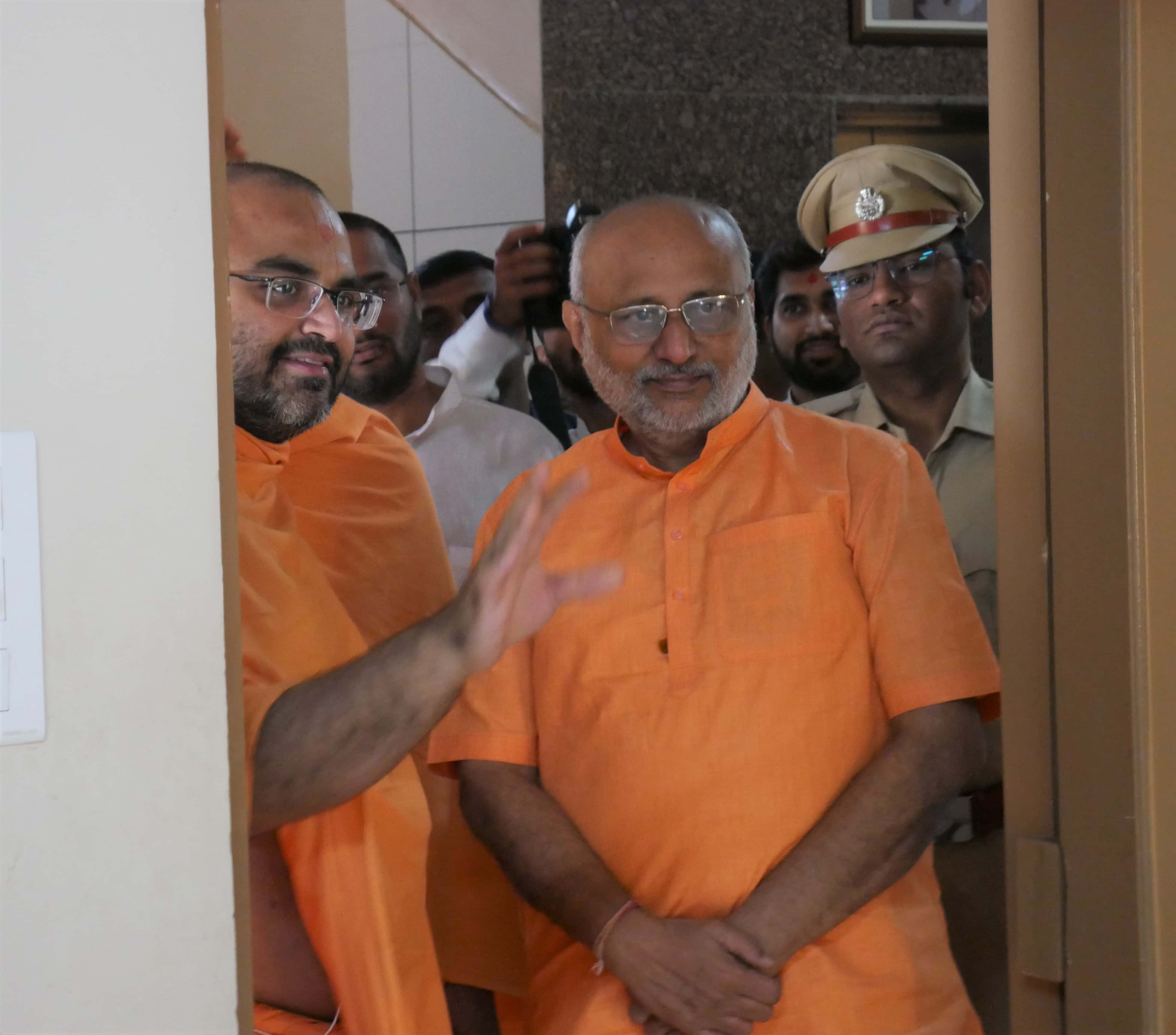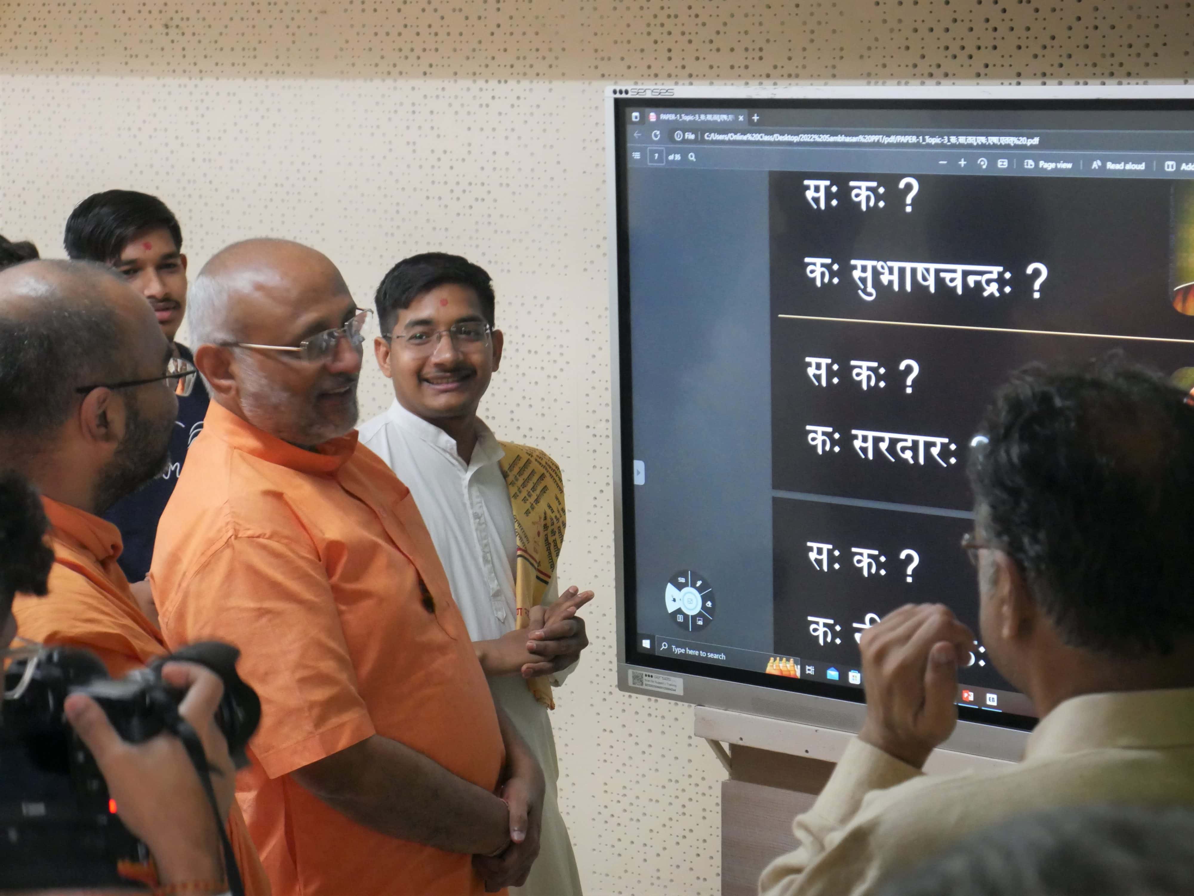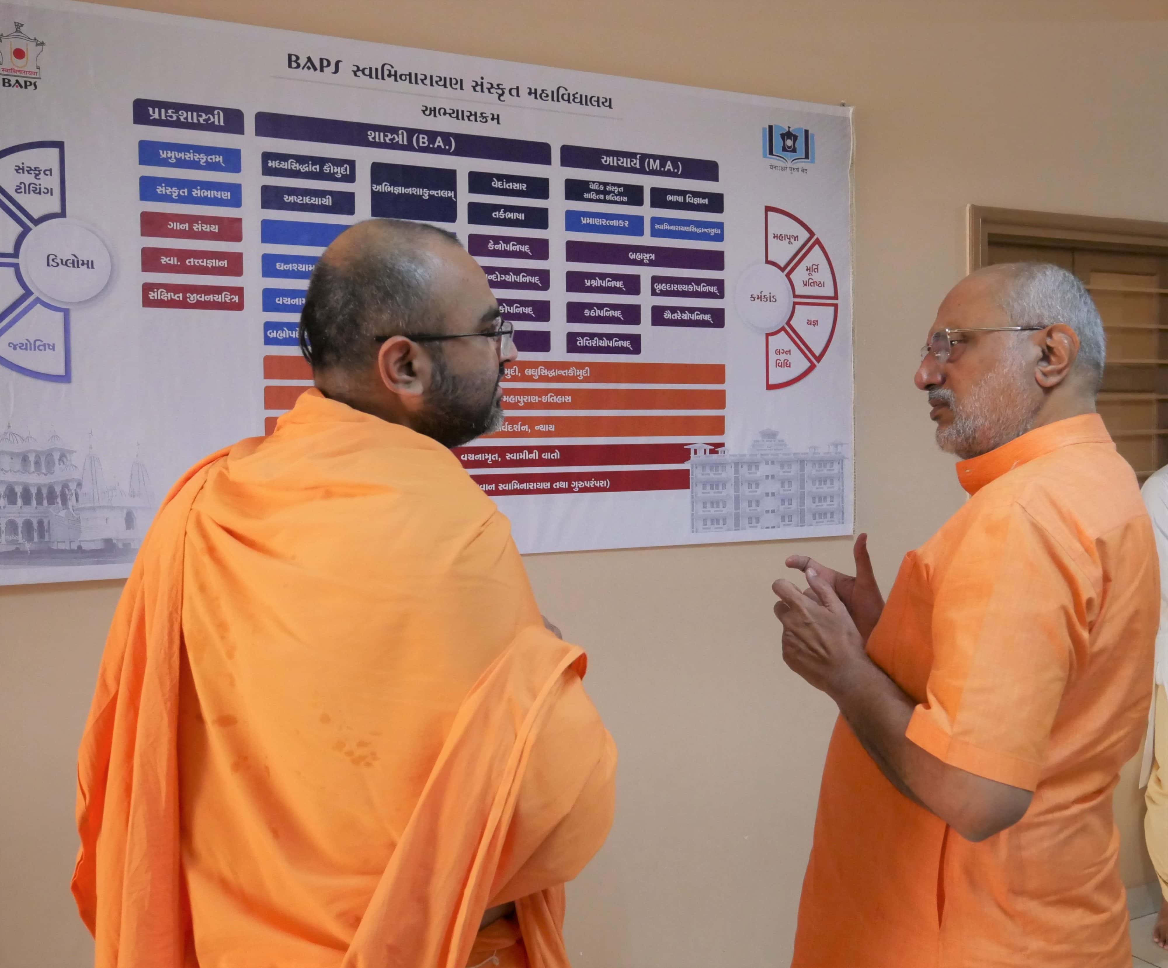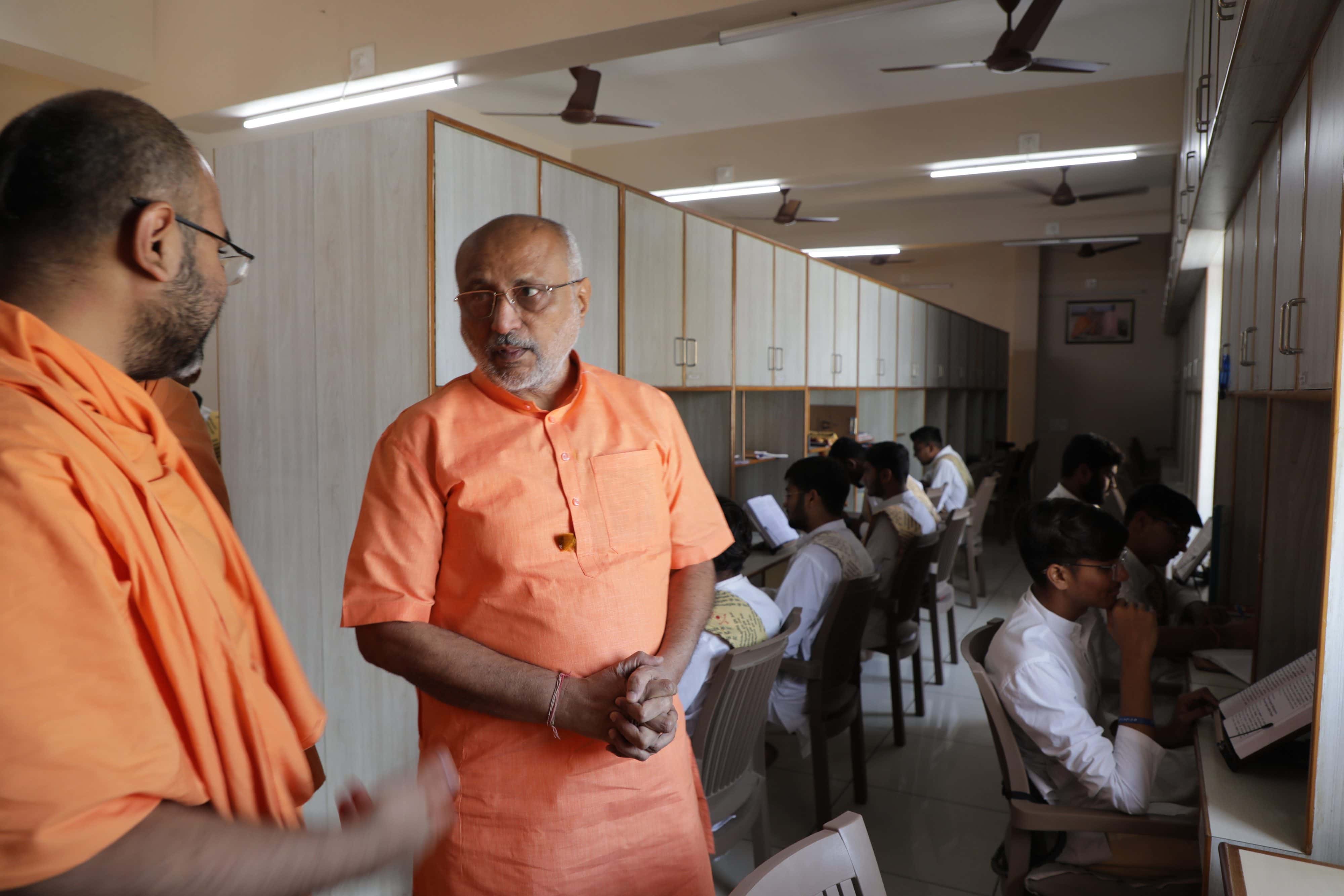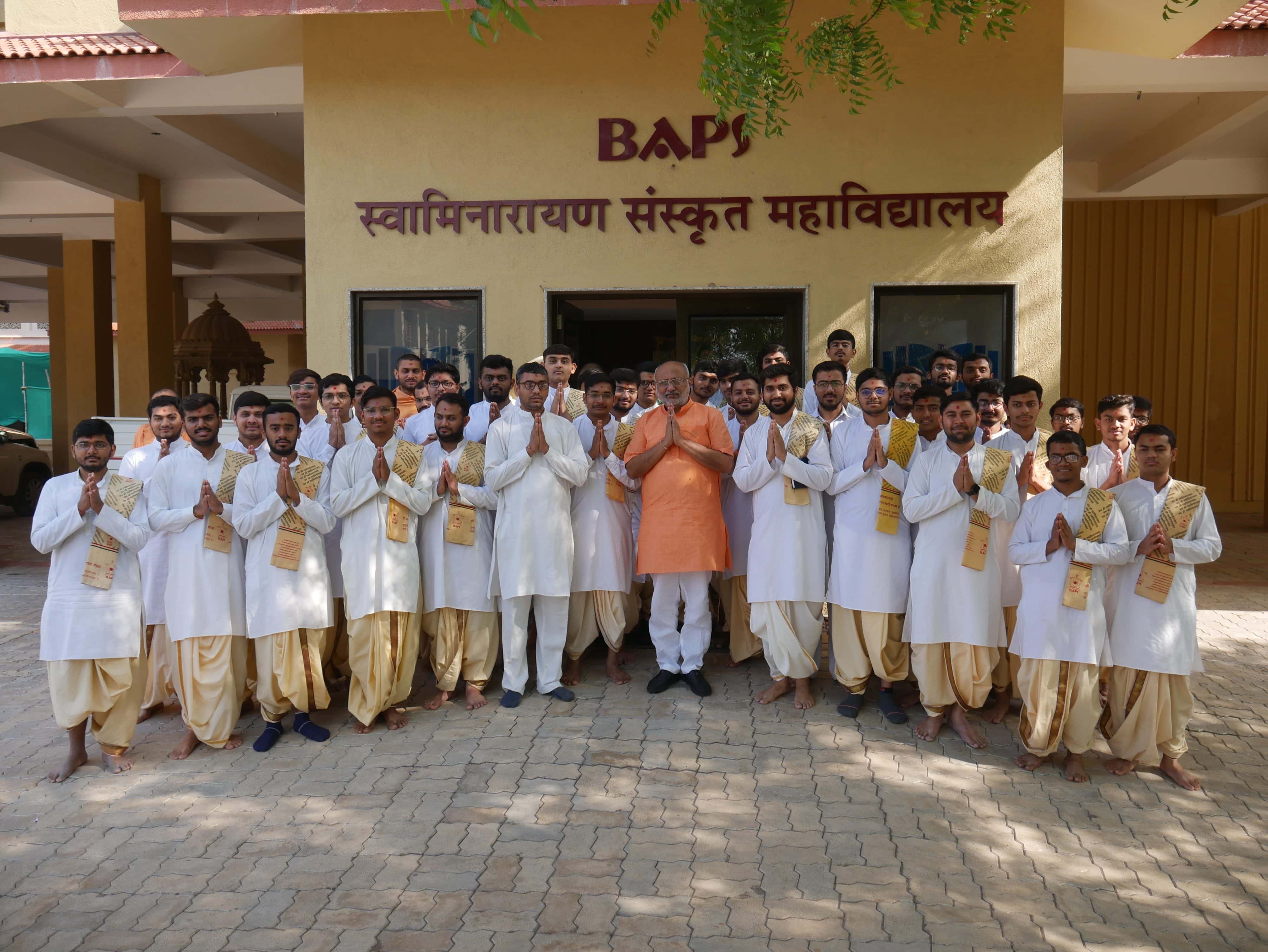 ૨૦ માર્ચ ૨૦૨૩, સોમવારના રોજ ઝારખંડના રાજ્યપાલશ્રી સી.પી. રાધાક્રિષ્નન સારંગપુર સ્થિત બી.એ.પી.એસ. સ્વામિનારાયણ સંસ્કૃત મહાવિદ્યાલયની મુલાકાત લેવા માટે પધાર્યા હતા. તેઓએ વ્યવસ્થાપનકક્ષ, સંગણકકક્ષ અને ગ્રંથાલયની મુલાકાત લીધી. ગ્રંથાલયની મુલાકાત વખતે મહામહોપાધ્યાય પૂ. ભદ્રેશદાસ સ્વામી વિરચિત અક્ષરપુરુષોત્તમદર્શન સ્વામિનારાયણ ભાષ્યો જોઇને અતિશય પ્રભાવિત થયા. મહાવિદ્યાલયમાં વિદ્યાર્થીઓને ભણાવામાં આવતો અભ્યાસક્રમ દર્શાવામાં આવ્યો. વર્ગખંડમાં પ્રાચીન ગુરુકુળ પરંપરા પ્રમાણે નીચે બેસીને અભ્યાસ કરવાની પ્રણાલિકા જોઇને પ્રભાવિત થયા અને પોતે સ્વેચ્છાએ નીચે બેસીને બધા વિદ્યાર્થીઓને નીચે બેસીને અભ્યાસ કરવાનો આદર્શ પુરો પાડ્યો. રાજ્યપાલશ્રી ડિઝિટલ સ્ટુડિયો જોવા પધાર્યા. અહીં તેઓ આધુનિકતા અને પ્રાચીનતાના સુભગ સમન્વય દ્વારા સંસ્કૃત ભાષાનો અભ્યાસ કરાવવામાં આવે છે તે જોઇને અતિશય પ્રભાવિત થયા. અંતમાં મહાવિદ્યાલયના વિદ્યાર્થીઓને બોધપાઠ આપતા લખ્યું કે; “આપણું જીવન જન્મ અને મૃત્યુ વચ્ચેની ટૂંકી યાત્રા છે, આપણું જીવન બીજાને ત્યારે ઉપયોગી બને જ્યારે આપણે તેને મદદરૂપ થઇએ છીએ.”