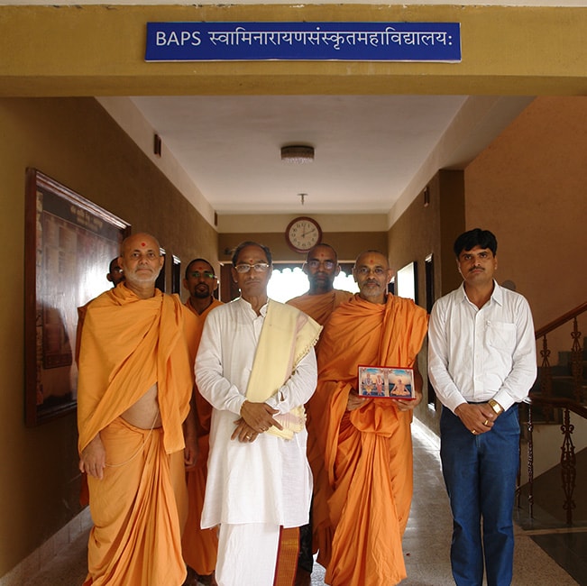 2018 Value-based Growth The BAPS Swaminarayan Sanskrit Mahavidyalay is situated in the modest landscape of Sarangpur, Gujarat. The Mahavidyalay was envisioned by Pramukh Swami Maharaj to be a place where quality post-secondary and higher education would be accompanied with holistic and value-based learning. He emphasized the need for all education and research to be founded on a core set of Vedic values that enriched not only the lives of the students themselves but also of the communities in which they would come to live in and serve. Founded on this mission, the Mahavidyalay set forward on its journey to create an environment that would foster the development of responsible scholars and impactful, quality academic research. Institutional affiliations provide prestige and identity to students and researchers, positively impact access to resources and infrastructure, and allow for plentiful opportunities for exposure, growth, and career advancement. In 2013, BAPS Swaminarayan Sanskrit Mahavidyalay became affiliated with Shree Somnath Sanskrit University (SSSU)—a public university created by the Gujarat State government through the Shree Somnath Sanskrit University Act in 2005 for the research and teaching of Sanskrit literature. By sharing a mutually beneficial relationship with SSSU, the Mahavidyalay grounded its advanced Sanskrit studies activities in a formal degree program, allowing its members to acquire diploma certifications and enroll in bachelors, post-graduate, and doctorate programs.